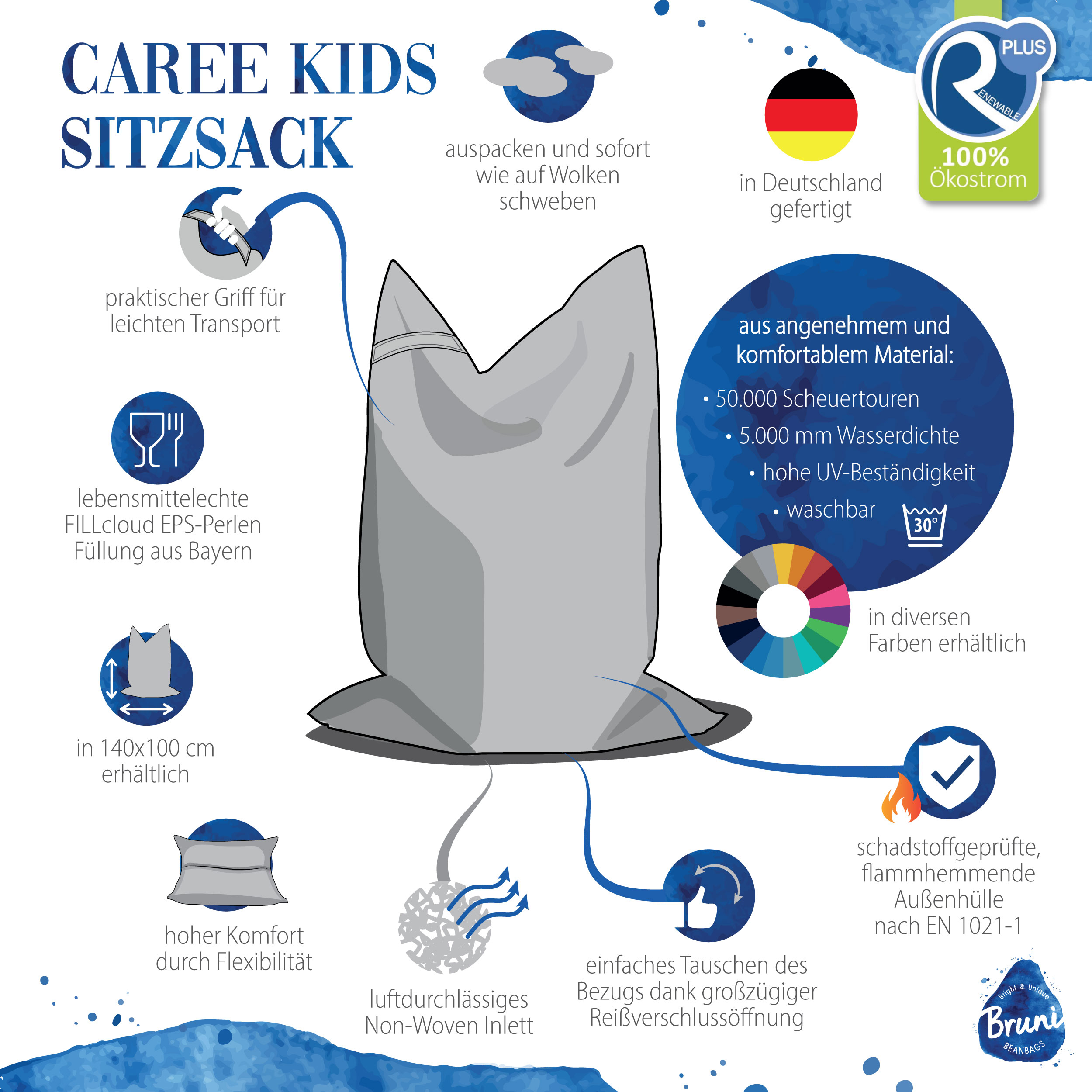 Bruni vereint bayerische Manufakturarbeit, österreichischen Stil und internationales Design. Auf Bruni-Sitzsäcken genießt du puren Komfort und kannst wie auf Wolken entspannen!