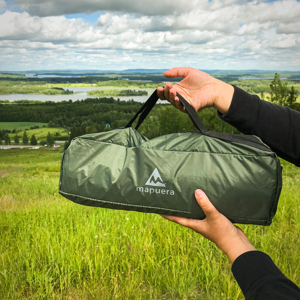 - Außenzelt: 75D Polyester mit 5.000 mm Wassersäule, versiegelte Nähte