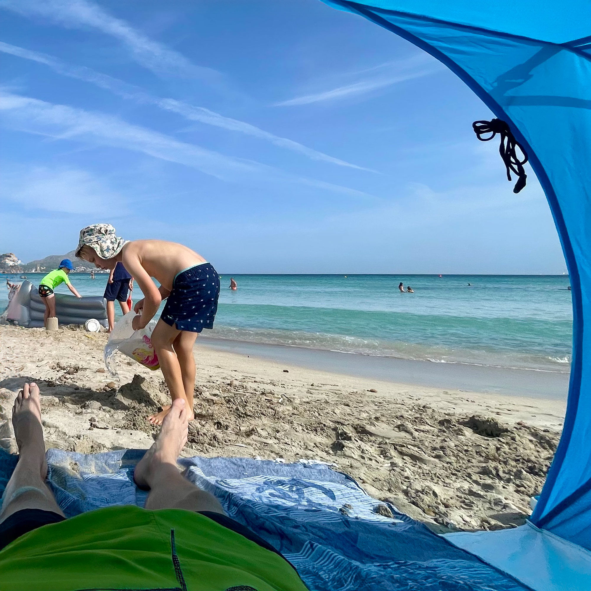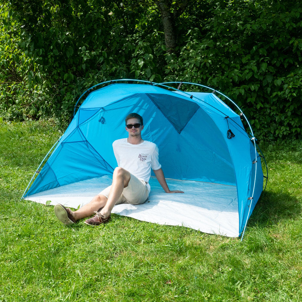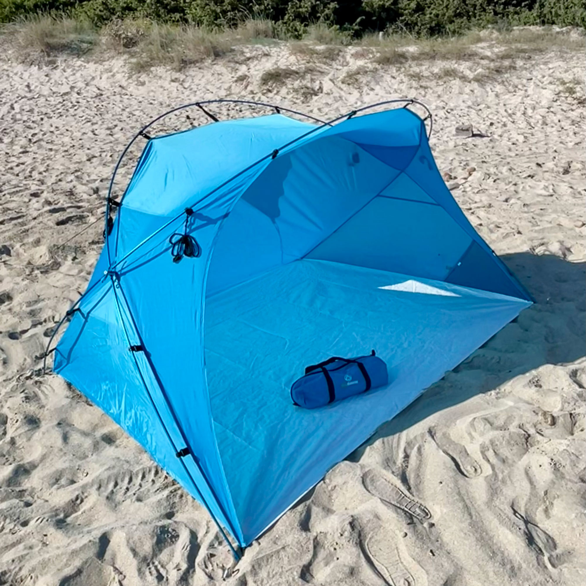 Ein verschließbares Netzfenster sorgt für Luftzirkulation ohne unerwünschte Gäste, vier praktische Innentaschen halten Sonnenbrille, Buch und Co. griffbereit. Die mitgelieferte Transporttasche besteht aus robustem Oxford Polyester und wird durch langlebige SBS-Reißverschlüsse ergänzt. Auch Abspannleinen und Alu-Heringe gehören zum Lieferumfang und sichern deine Strandmuschel gegen Windböen.