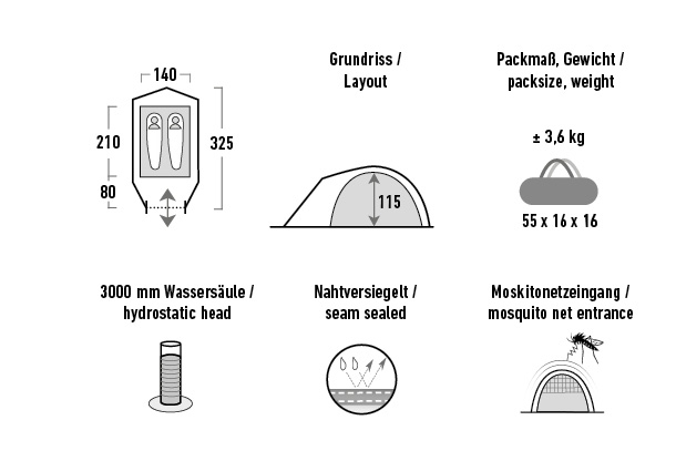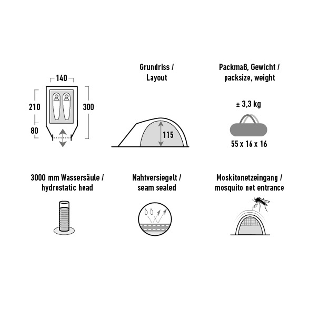 Technische Facts – High Peak Campingzelt - 2 Personen, wasserdicht