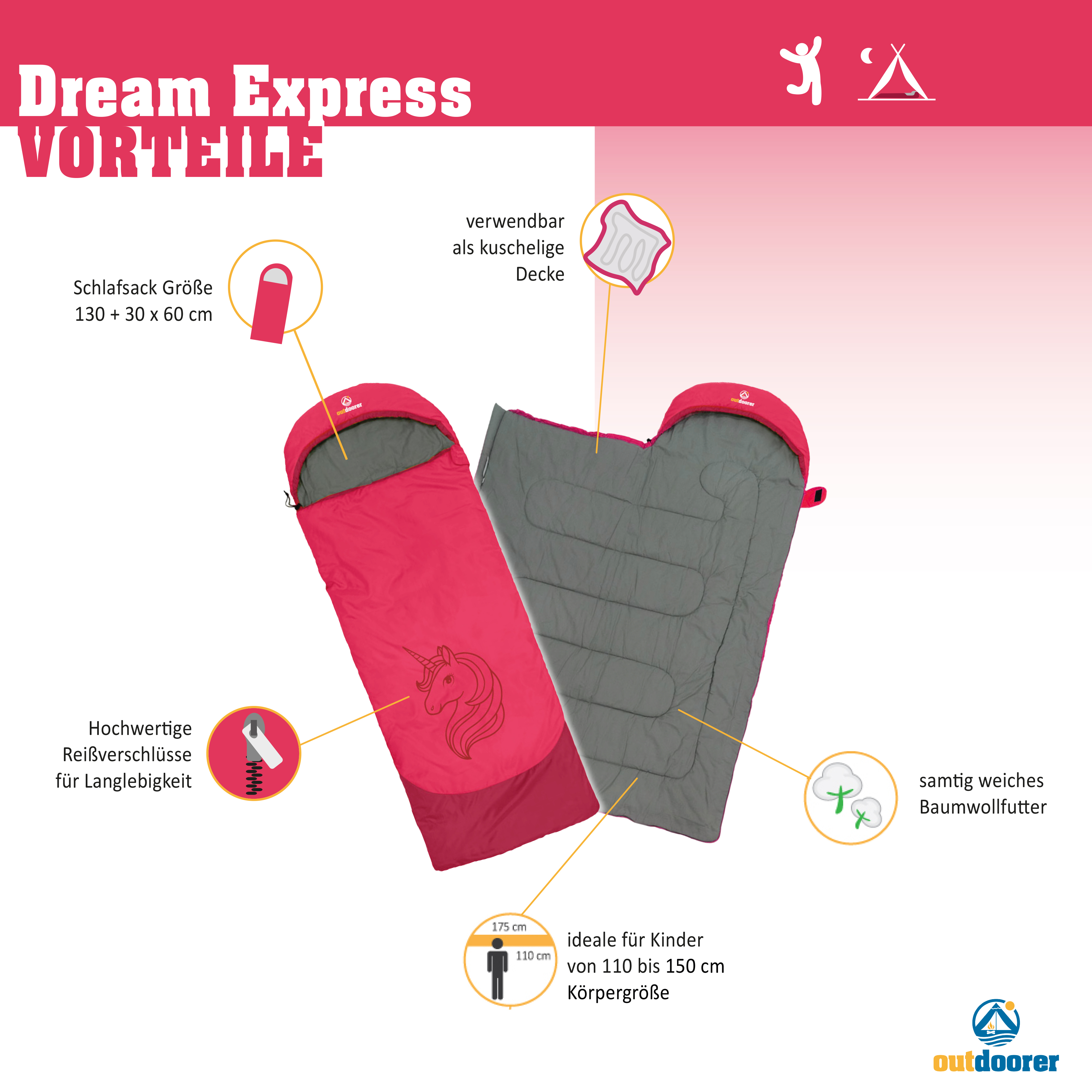Produktinformationen "Dream Express Kinderschlafsack pink mit Einhorn Motiv - BIONIC FINISH® ECO Schlafsack für Kinder Camping"