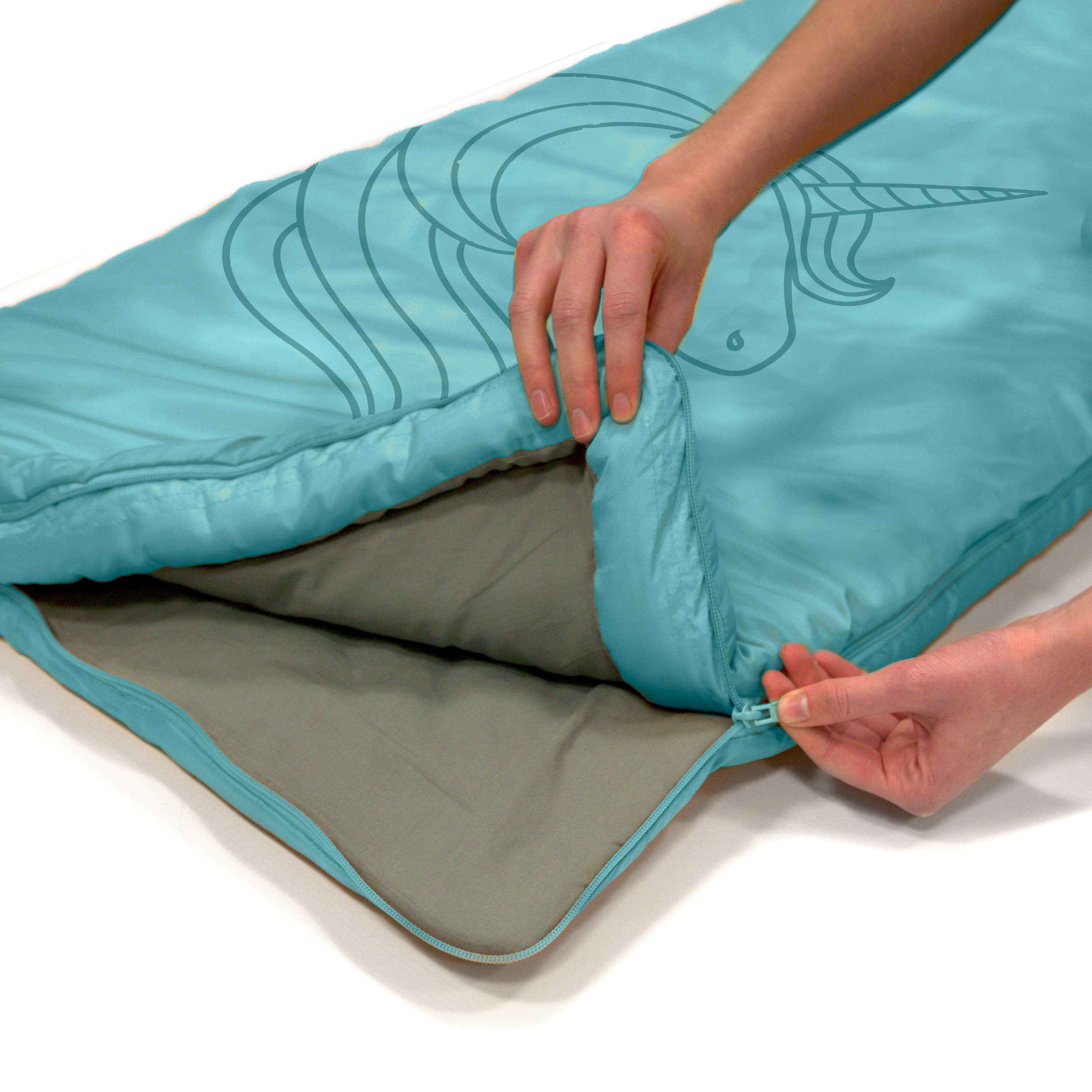 Dream Express in Aqua mit Einhorn-Motiv - BIONIC FINISH® ECO Schlafsack für Kinder