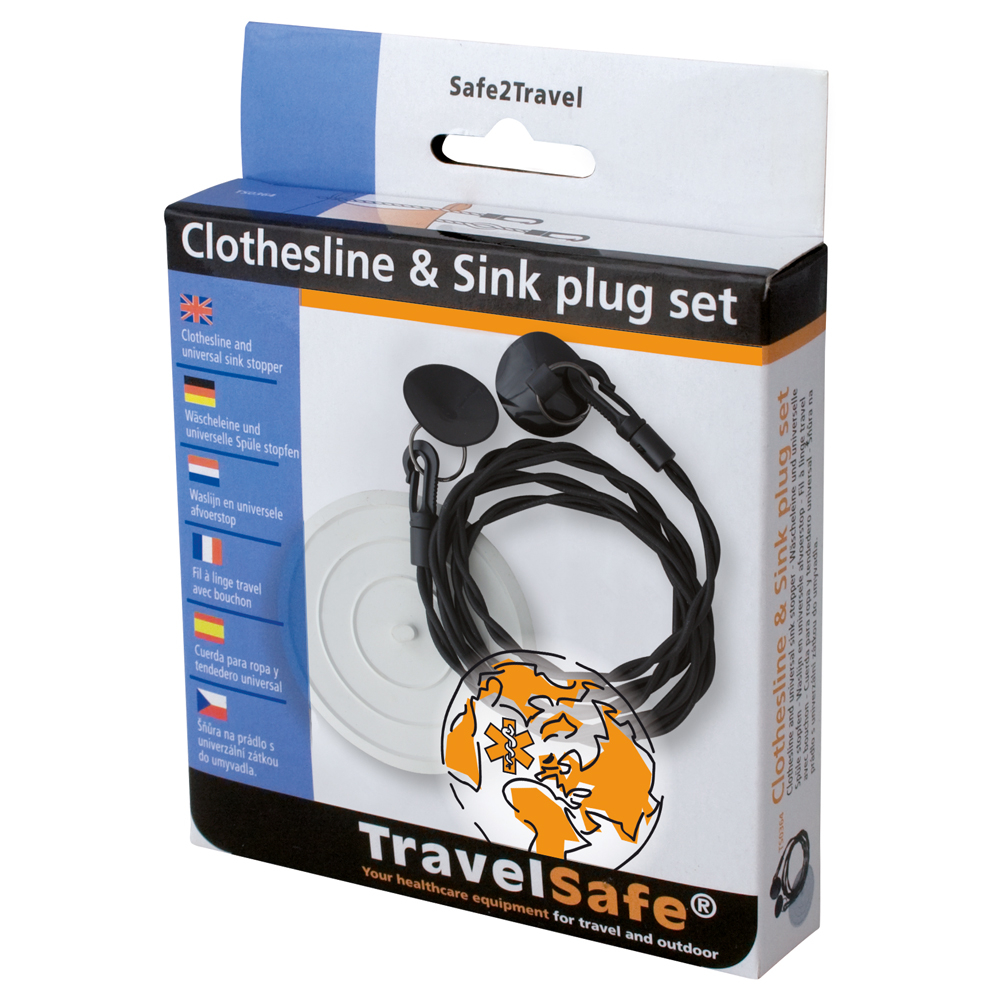 Flexible Reise-Wäscheleine mit Waschbeckenstöpsel - keine Klammern nötig