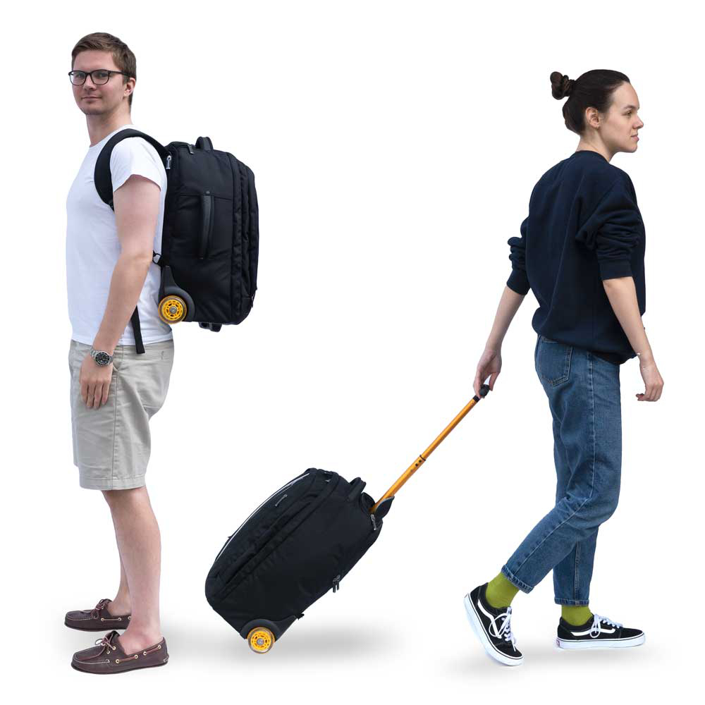 Geschäftsreisende, die dem gerade startenden Flugzeug nachlaufen und Wochenendreisende, die ihr Gepäck in einem völlig überfüllten Rucksack transportieren, haben etwas gemeinsam: Sie benötigen den Handgepäck Trolley Rucksack Runway-33-. Dieser ist nicht nur ein stilvoller, handgepäckstauglicher Trolley, sondern auch als voluminöser Rucksack verwendbar. Dies ist vor allem in Stresssituationen praktisch: Mit einigen wenigen Handgriffen schnallst du ihn dir dank der versteckten Schultergurte über den Rücken und kommst so noch rechtzeitig zum Gate. Ob Maßanzug oder Seidenbluse, deine Kleidung bleibt dank Rollenschutz dabei sauber.
