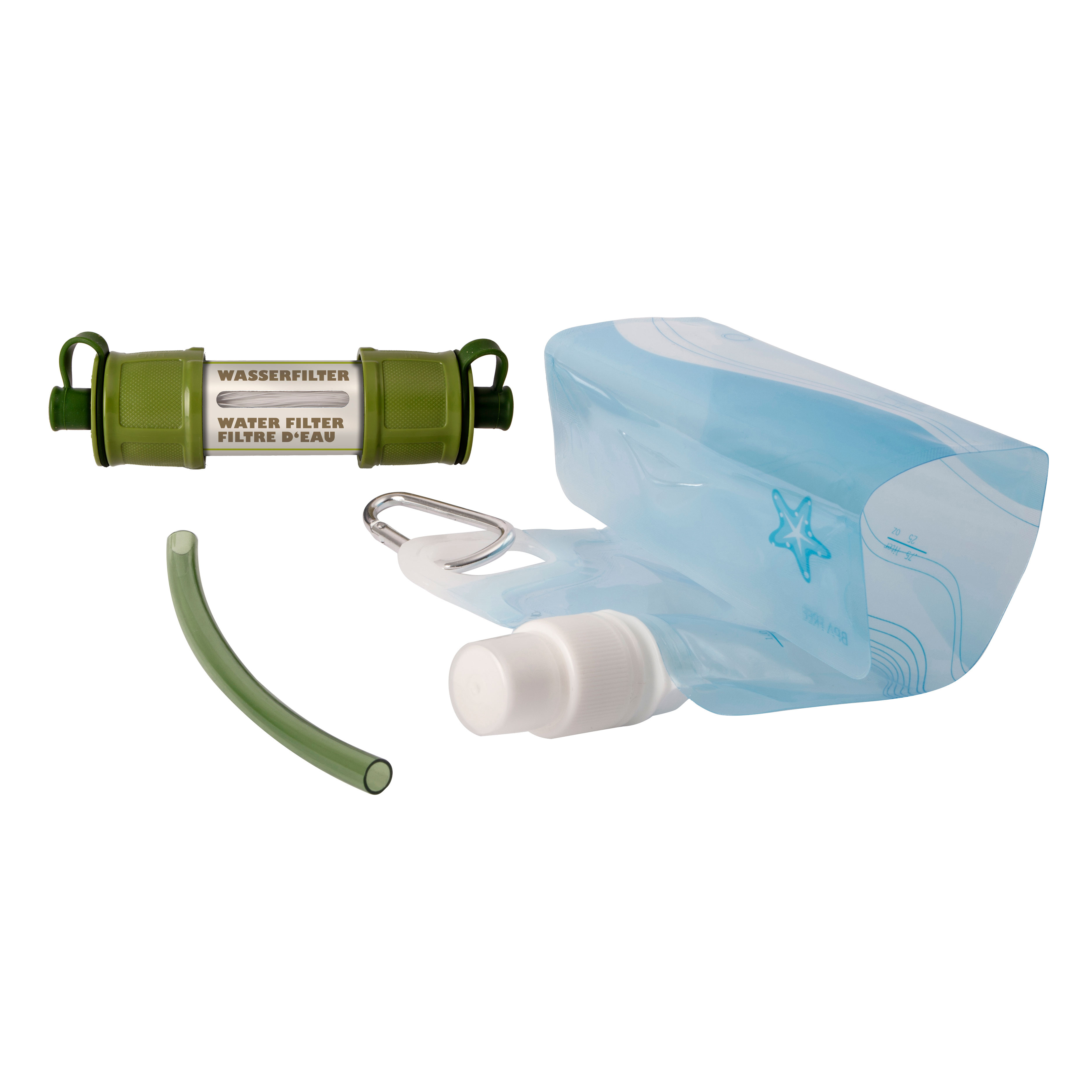 Handlich, leicht, effizient und dazu noch naturfreundlich – das alles sind die Features von diesem Outdoor Wasserfilter. Sie müssen sich keine Gedanken mehr darüber machen, wo Sie die nächste Quelle mit Trinkwasser finden, mit dem Wasserfilter können Sie ohne Bedenken aus jeder Süßwasserquelle wie einem See, Fluss oder Bach trinken. Zu den ultimativen Vorteilen des Outdoor Wasserfilters gehört zum einem, dass er sehr klein und in einer Hand Platz hat und keine Batterien nötig sind, um diesen zu benutzen. Zum anderen handelt es sich bei diesem Filter um einen Gravitationsfilter, welcher ohne separates Pumpsystem funktioniert - dies sorgt für maximale Robustheit, da die Konstruktion keine empfindlichen separaten Teile aufweist. In der Lieferung enthalten sind auch ein 500 ml Quetschbeutel, Trinkhalm und Gebrauchsanleitung.
