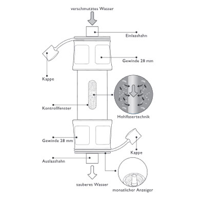 - Lebensdauer: filtert bis zu 100.000 Liter Wasser aus jeglicher Süßwasserquelle