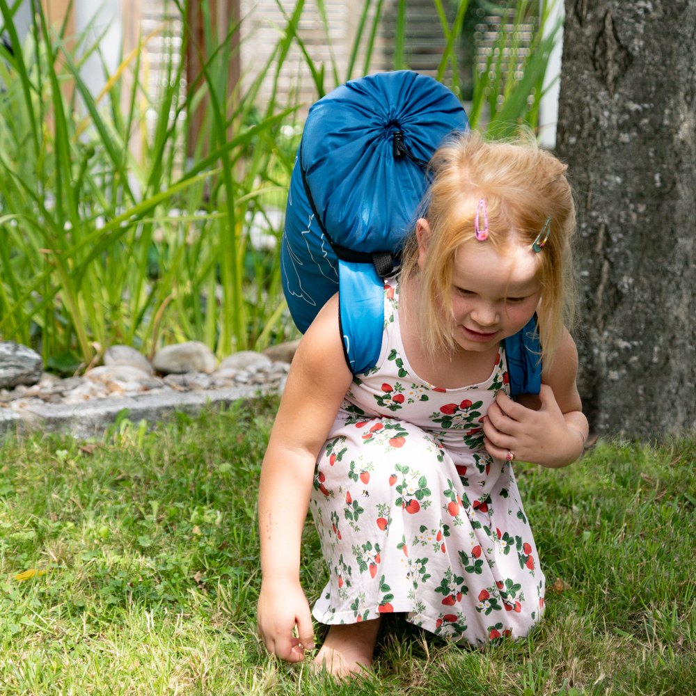 Doch trotz dieser großzügigen Maße und hochwertigen Materialien überzeugt der Kinderschlafsack im eingerollten Zustand mit nur 34 x 21 x 15 cm und ist mit ca. 1,15 kg im wahrsten Sinne des Wortes kinderleicht. Darüber hinaus ist der praktische Packsack mit Trägern ausgestattet, sodass er vom heranwachsenden „Bewohner“ selbst am Rücken transportiert werden kann. Das spart Eltern bei Campingtrips nicht nur Gewicht, sondern gibt den Kindern ein Gefühl von Selbständigkeit.