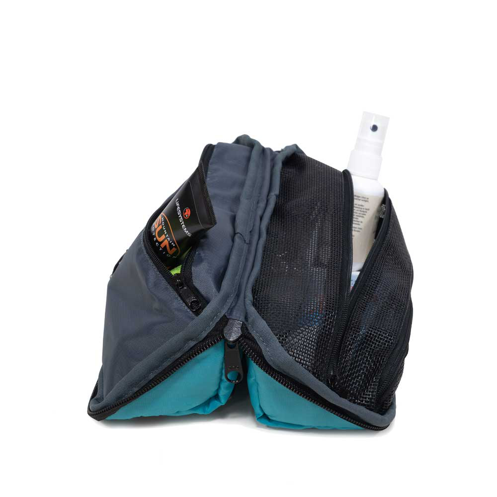 Dank dieses großzügigen Fassungsvermögens ist Platz für alle essenziellen Hygieneartikel auf Reisen. Denn in den Wash Butler S passen unter anderem Zahnbürste, Zahnpasta, Rasierapparat, Seifenblättchen, Insektenspray, Duschgel und Shampoo in Reisegröße.