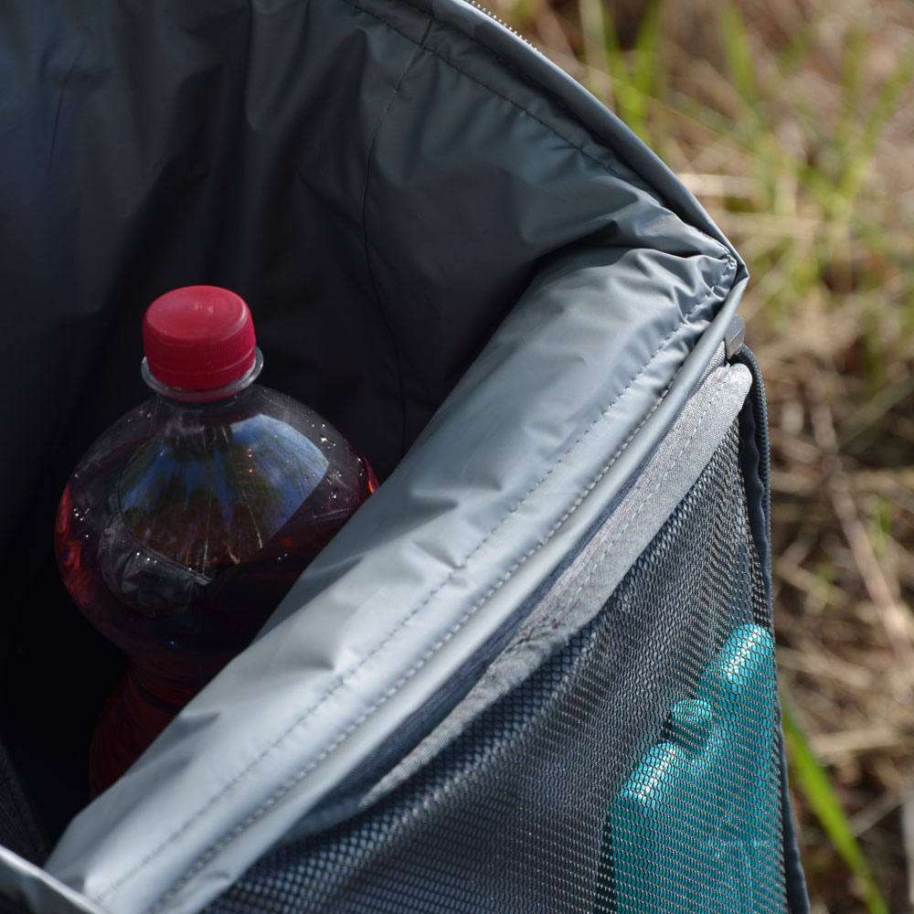 Diese Kühltasche ohne Akku hält passiv kühl, doch das reicht für einen Tag vollkommen. Um ganz sicher zu gehen, verwende zusätzlich Kühlakkus. Nach dem Einsatz kannst du den wasserfesten Innensack herausziehen und ihn einfacher reinigen.