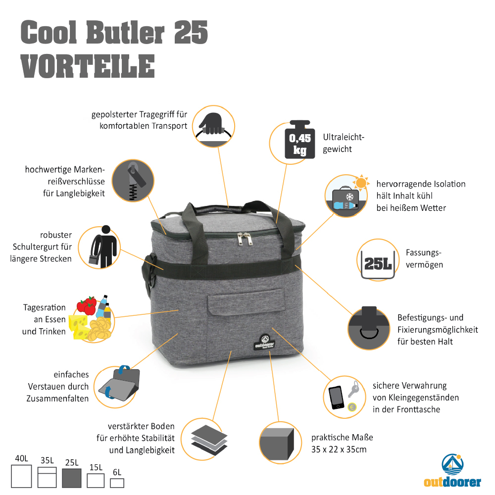 Technische Facts – outdoorer Cool Butler Kühltasche 25 L in Grau