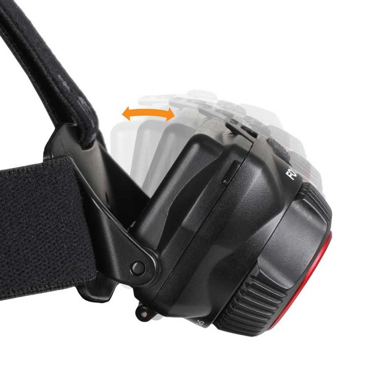 Erfreue dich an hoher Flexibilität, auch abseits des um 180° verstellbaren Leuchtkopfs. Mit dem Knopf der Lampe kannst du zwischen fünf verschiedenen Leuchtstufen und zwei verschiedenen Leuchtmodi wählen. Die Hauptlampe erstrahlt im weißen Licht und lässt sich in drei Stufen variieren – leichte, mittlere oder hohe Leuchtintensität. Die beiden Nebenlampen können sowohl weiß als auch rot strahlen und blinken und lassen sich zwischen hoher beziehungsweise niedriger Leuchtintensität verstellen. Um gesehen zu werden, kannst du bei der LED Stirnlampe auch eine der beiden Leuchtstufen Signallicht und SOS-Licht einstellen.
