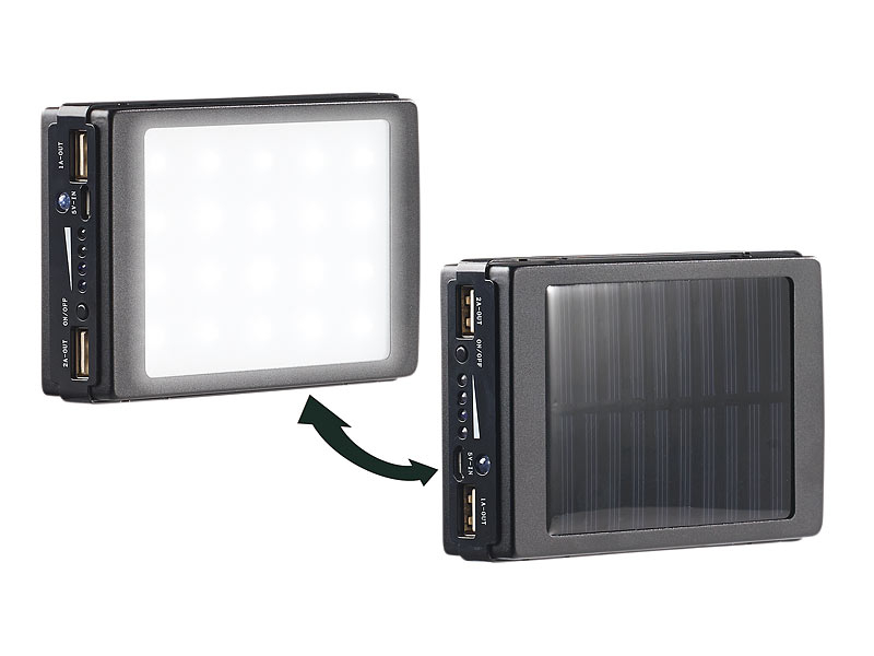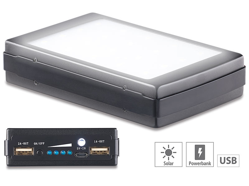 - Lieferumfang: mobile Solar Powerbank, Micro-USB-Ladekabel, Anleitung