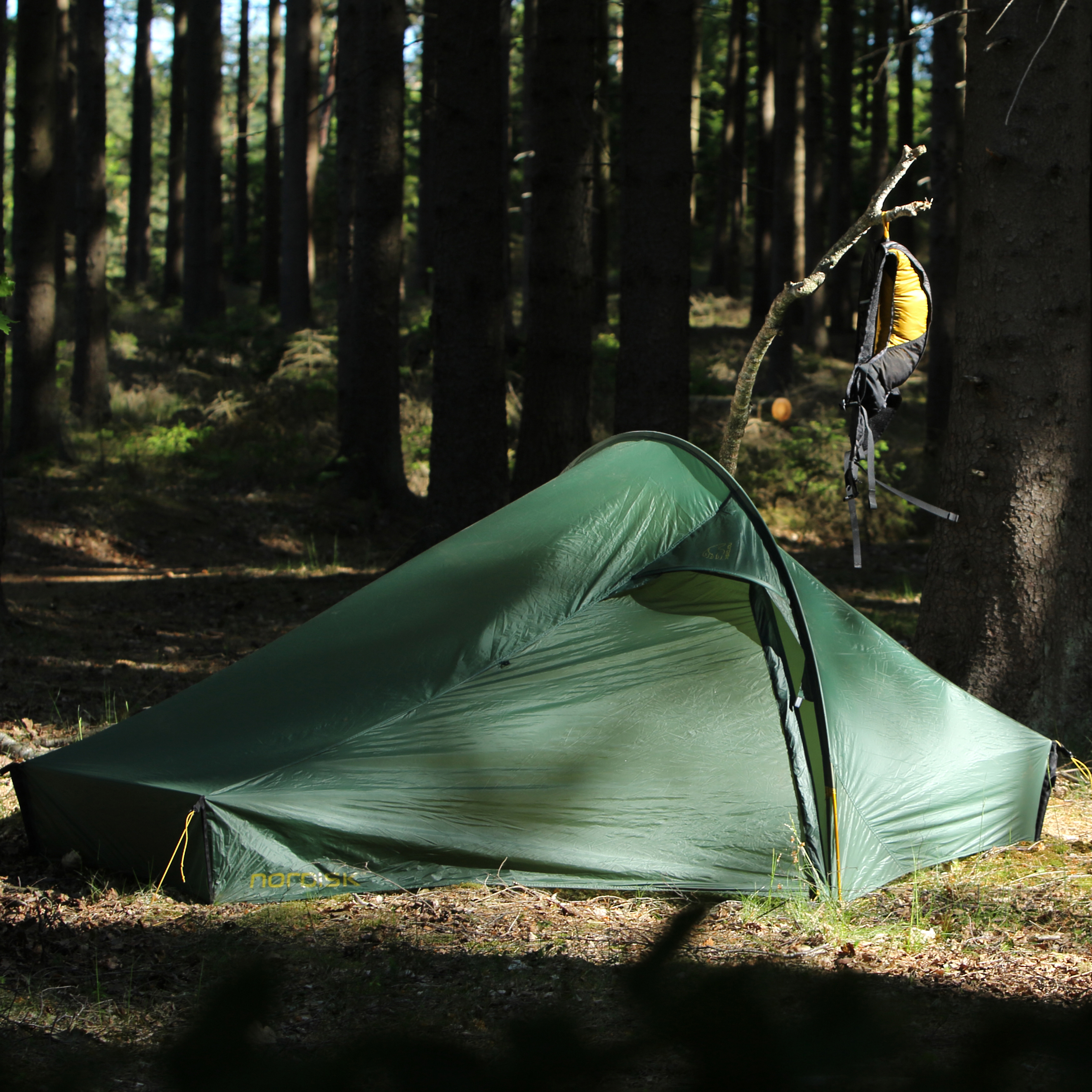 Das Außenzelt ist aus robustem Rip-Stop Nylon gefertig. Das verwendete 10D Nylon ist speziell für die Leichtzelte von Nordisk entwickelt worden. Es ist extrem leicht, aber äußerst widerstandsfähig. Für optimalen Regenschutz ist die Außenhülle beidseitig 3-fach silikoniert, damit erreicht das Zelt eine Wassersäule von 2.000 mm.