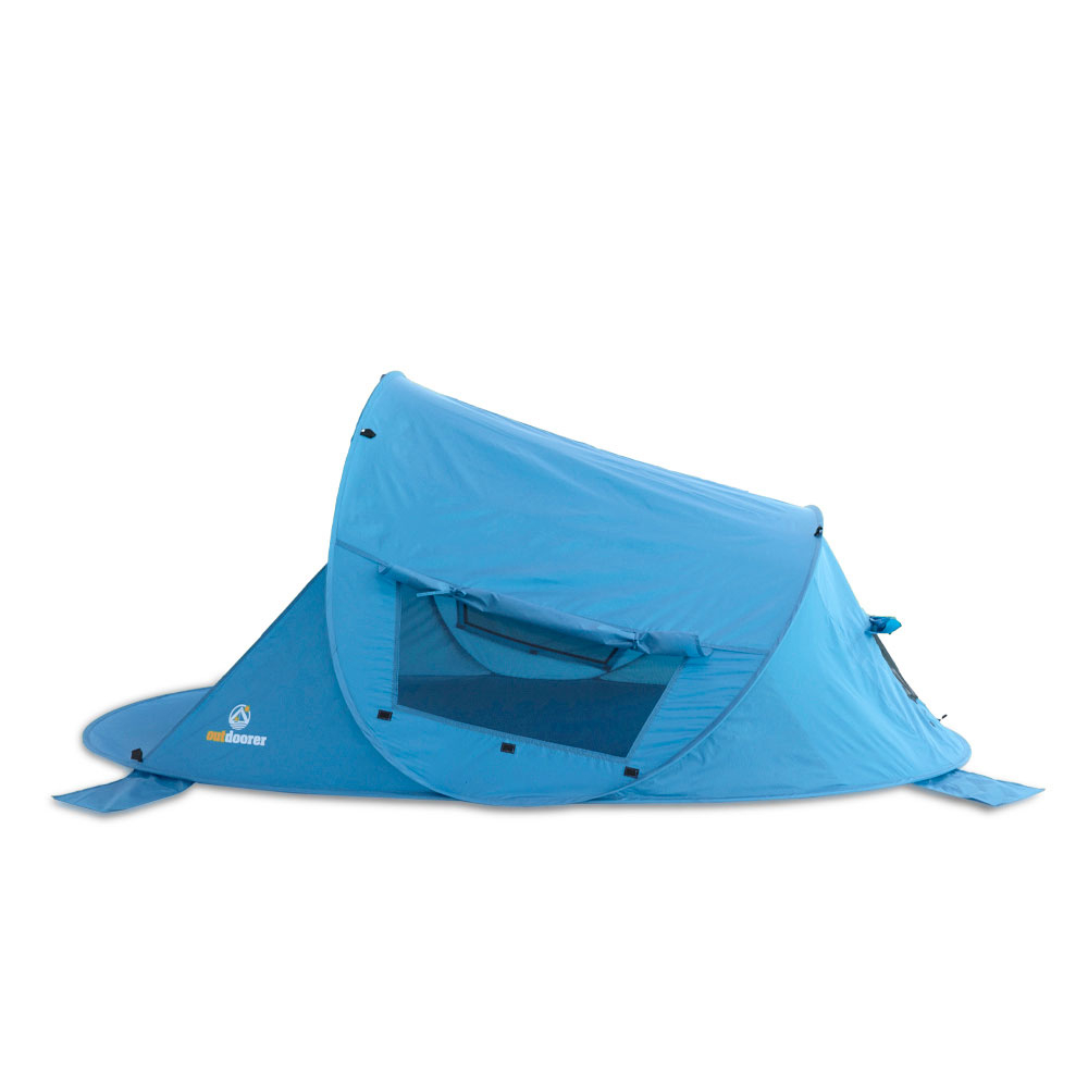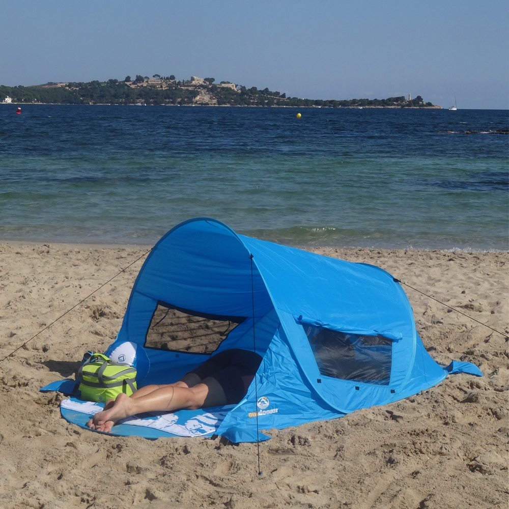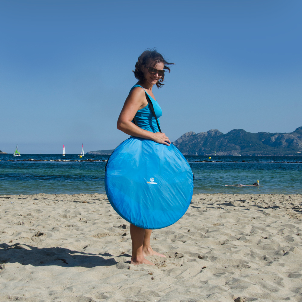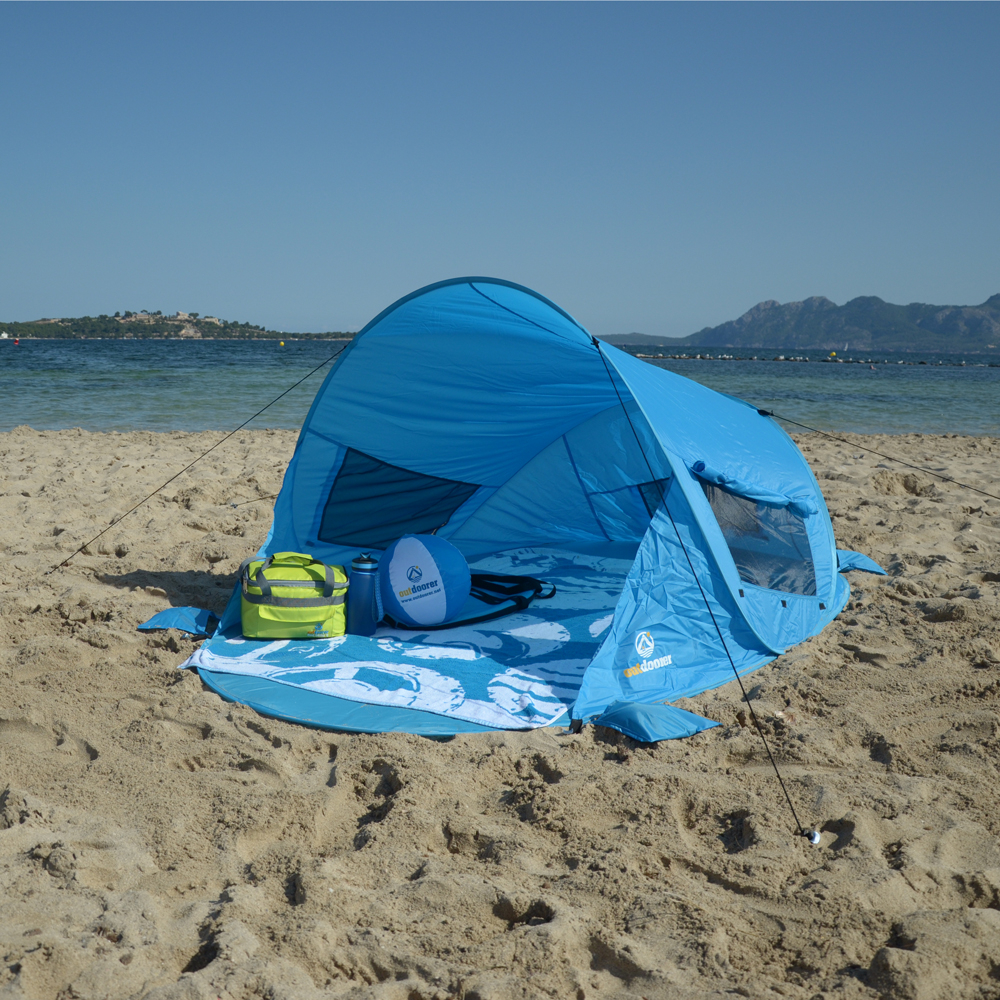 Pop Up Strandmuschel Zack Premium, blau inkl. Sandheringe und 3 Fenster