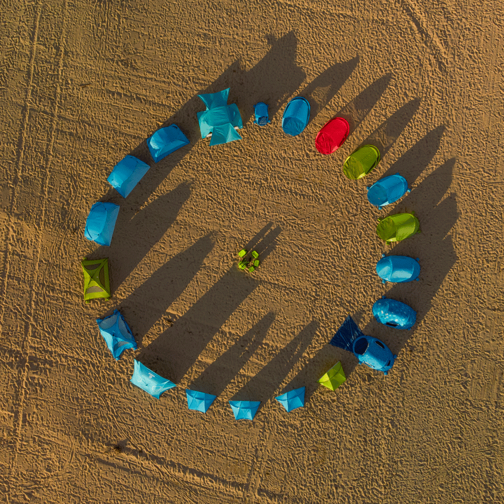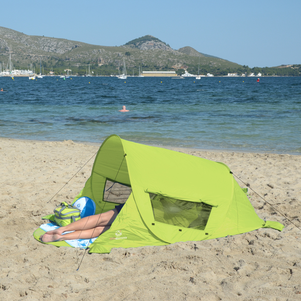 Eine praktische und platzsparende Strandmuschel für jegliche Ausflüge an Orte, bei denen man einen Sonnenschutz braucht: Strand, Camping...