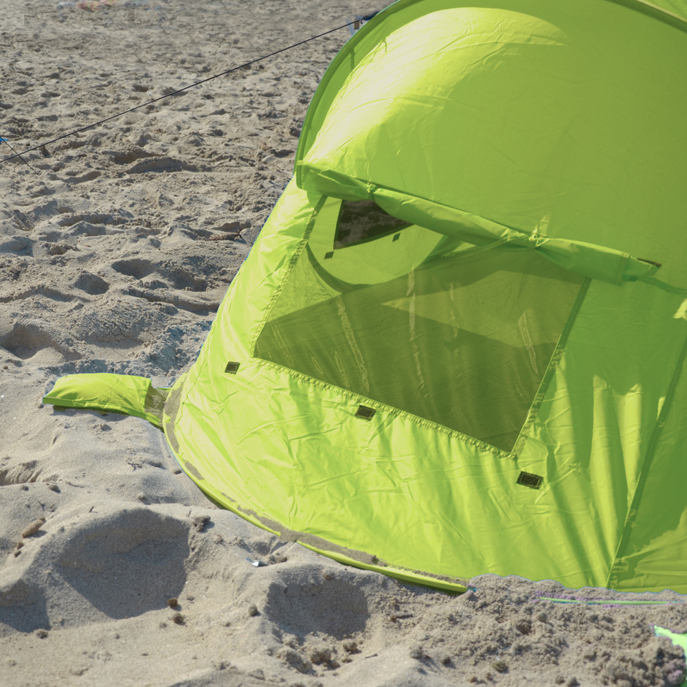 Pop Up Strandmuschel Zack Premium, grün inkl. Sandheringe und 3 Fenster