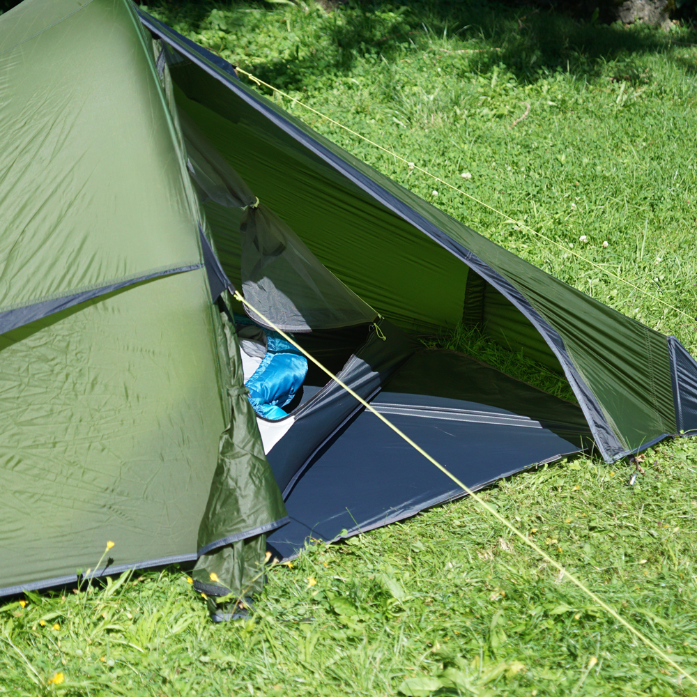 Da die Zeltunterlage größer als das Innenzelt ist, wird nicht nur das eigentliche Trekkingzelt geschützt, sondern zudem auch die Apsis. So können Schuhe trotz schlammigem Boden zum Trocknen aufgestellt werden. Auch kannst du hier Gepäck vor Schmutz geschützt lagern.