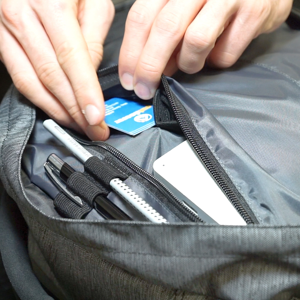 Apropos Sicherheit auf Reisen: Für die sichere Verwahrung von Reisepass und Kreditkarte wurde eine RFID Schutzhülle in ein Fach des Digital Nomad 35 integriert. Anders als bei gängigen Versionen von RFID Schutz, die oftmals Alufolie ähneln, wurde die Schutzhülle hier direkt ins Material eingearbeitet, wodurch sie deutlich unscheinbarer wird und dennoch ein Auslesen sensibler Daten unmöglich macht. Unter RFID (Radio-Frequency IDentfication) versteht man ein berührungsloses und automatisches Kommunikationsverfahren. Mit anderen Worten können durch diese Identifizierung anhand elektromagnetischer Wellen die von Reisepass und Kreditkarte ausgestrahlten Signale abgefangen und ausgelesen werden. Dies kann zu Datendiebstahl und -missbrauch führen. Da die Kreditkarte in manchen Regionen der Welt für Digitale Nomaden das einzige Zahlungsmittel (oder zumindest die einzige Möglichkeit, Geld abzuheben) darstellt - von der Bedeutung des Reisepasses ganz zu schweigen - ist der Schutz dieser Daten unerlässlich.