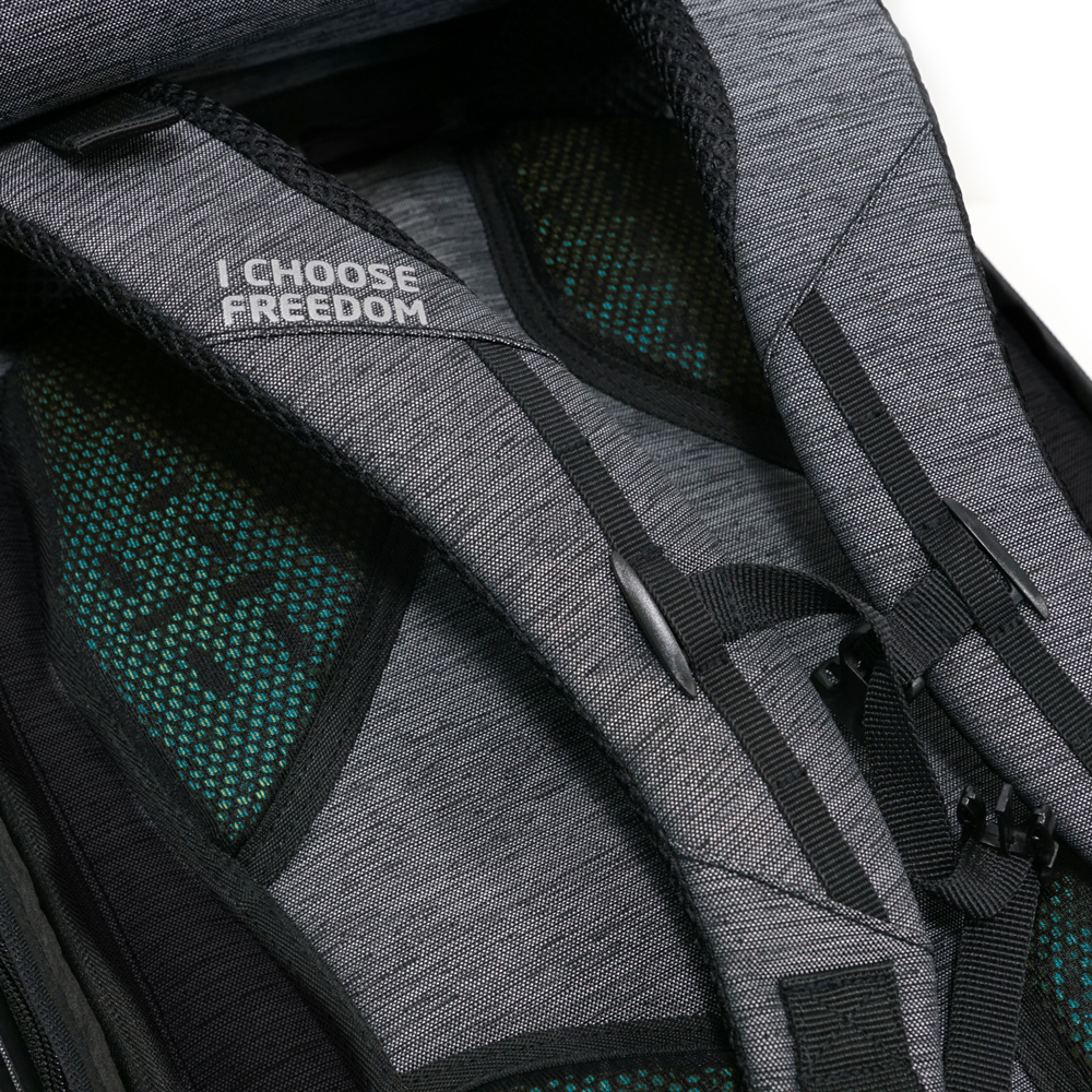 Ortsunabhängiges Arbeiten, Freiheitsgefühl, Selbstständigkeit - die Prinzipien Digitaler Nomaden sollten sich nicht nur in den Funktionen von diesem Business Rucksack, sondern auch in seinem Design wiederfinden. Dieses ist urban, elegant und minimalistisch, aber dennoch praktisch gehalten. Auf den freiheitsliebenden Lebensstil weist bei der limitierten Version (leider aktuell ausverkauft) der Schriftzug "I CHOOSE FREEDOM" hin. Unterstützt wird dieser Slogan von einer Weltkarte im Polygon-Design, auf welcher das Länder und Kontinente übergreifende und vernetzende Arbeiten Digitaler Nomaden dargestellt wird.