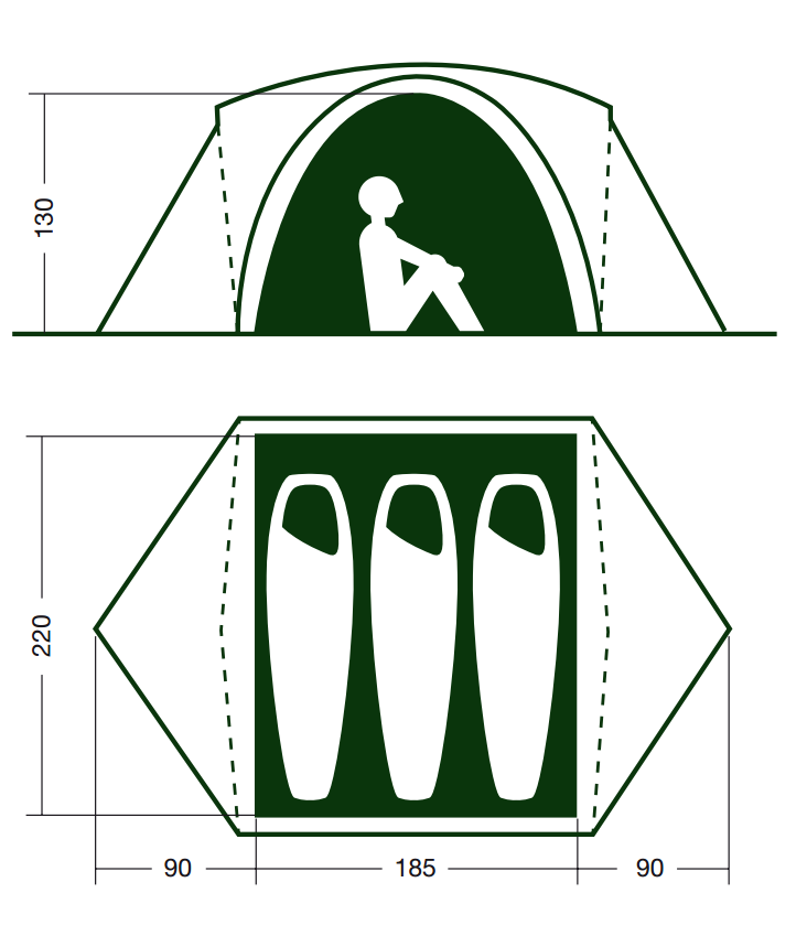 - Größe Innenzelt: 220 x 185 x 130 cm
