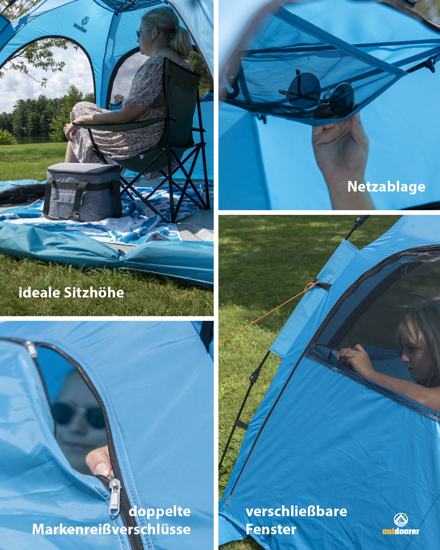 - Quick-up System: sekundenschneller Aufbau und kinderleichter Abbau