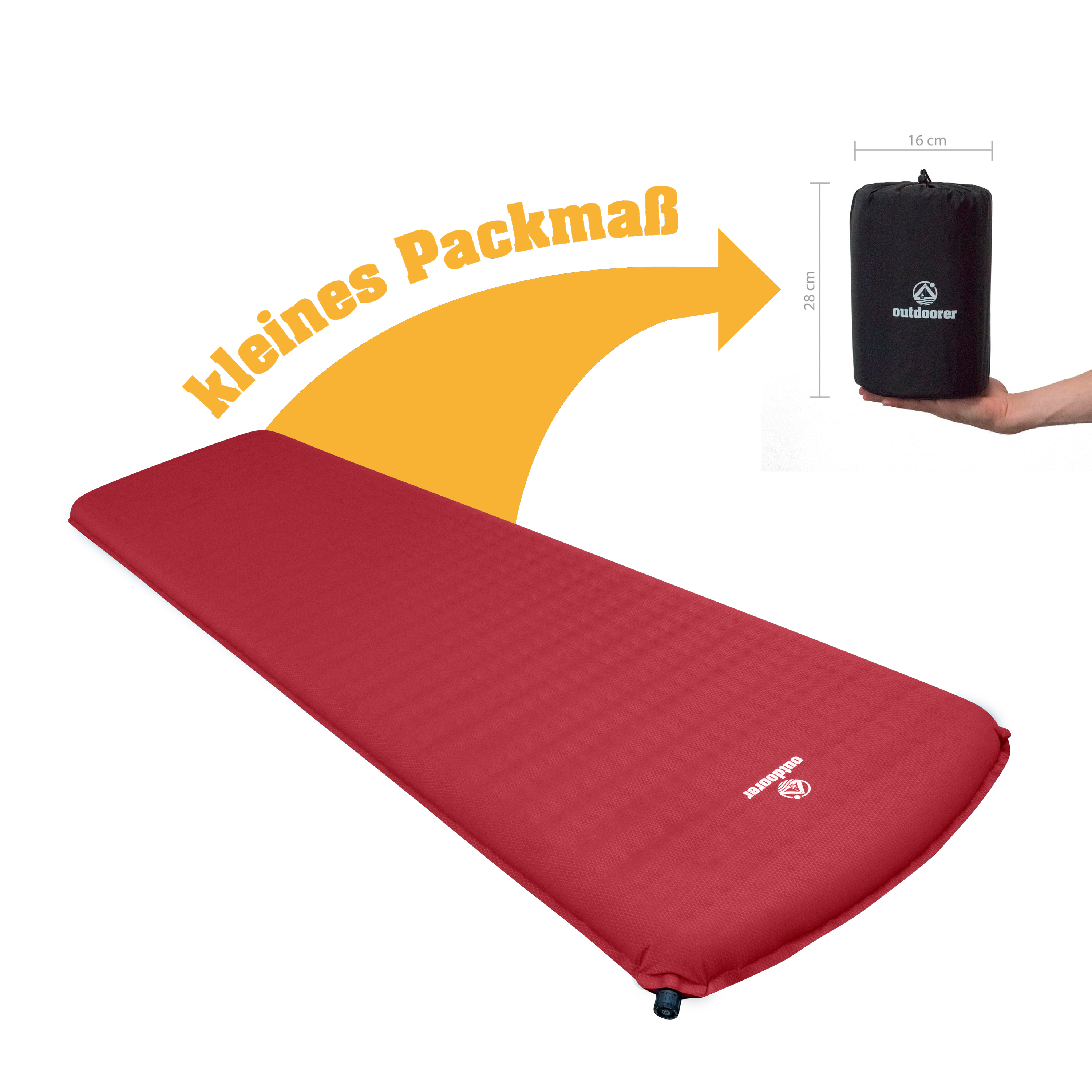 Trek Bed 2 in Rot, ultraleichte selbstaufblasende Isomatte, kleines Packmaß