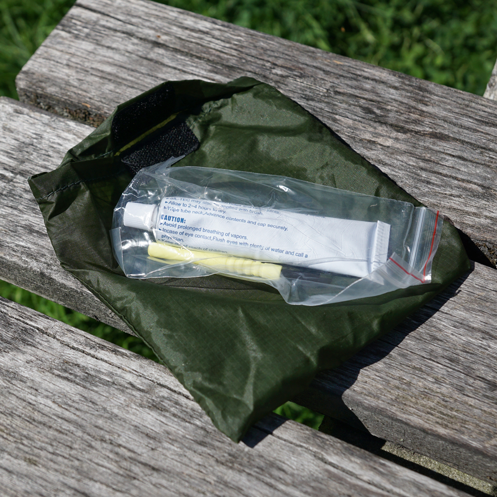 Es gibt ein kleines Set an Flickzeug, welches wir aber nicht ausprobieren mussten.