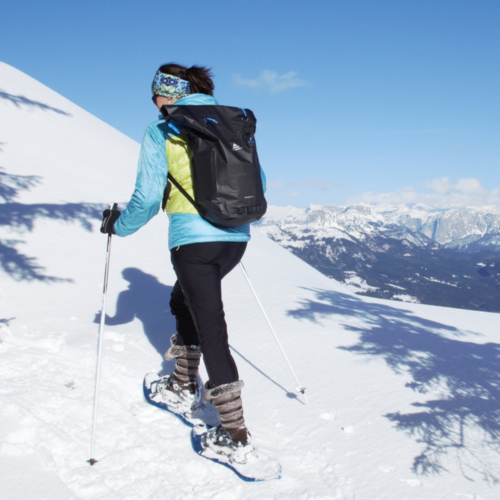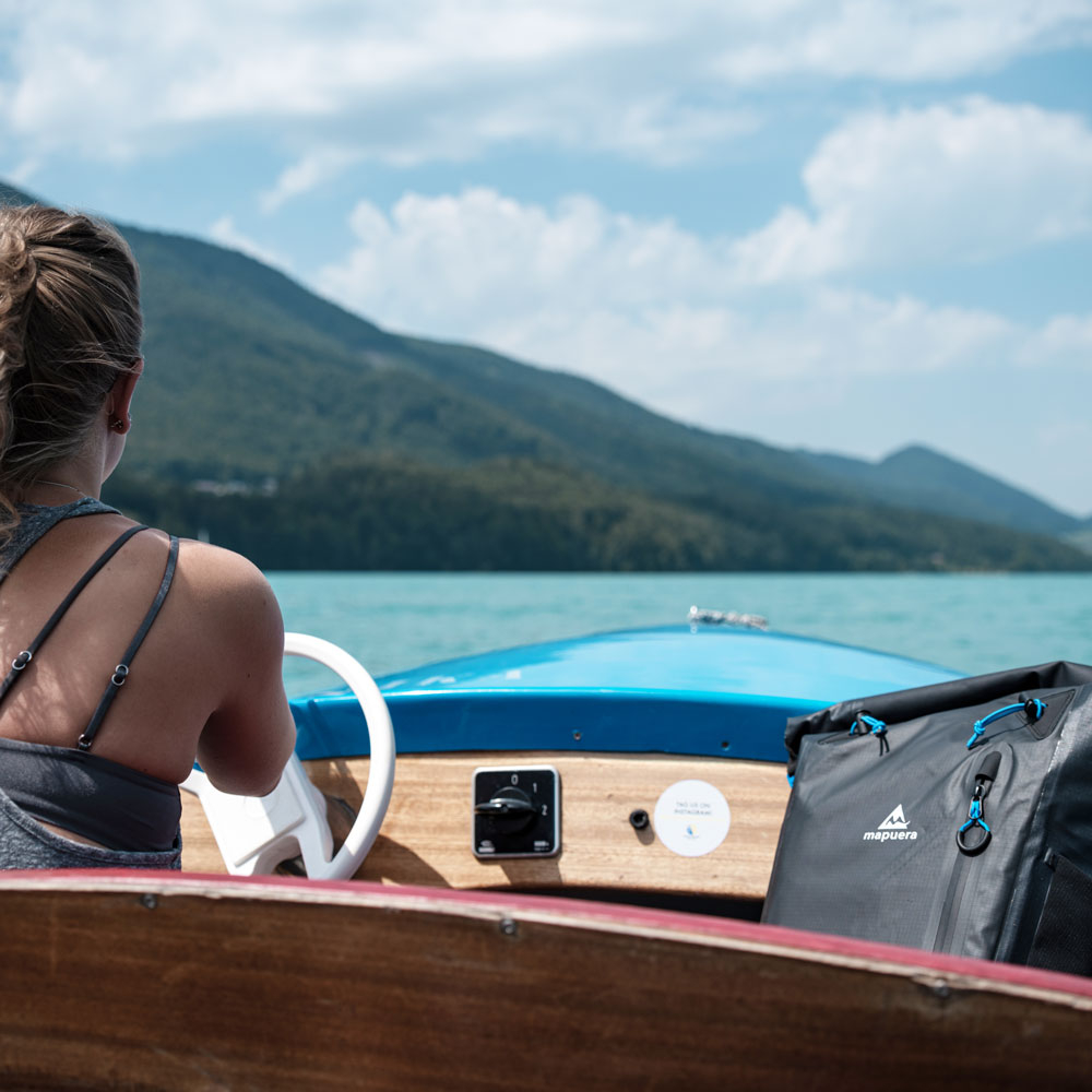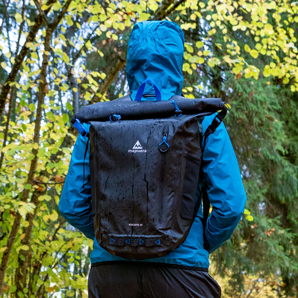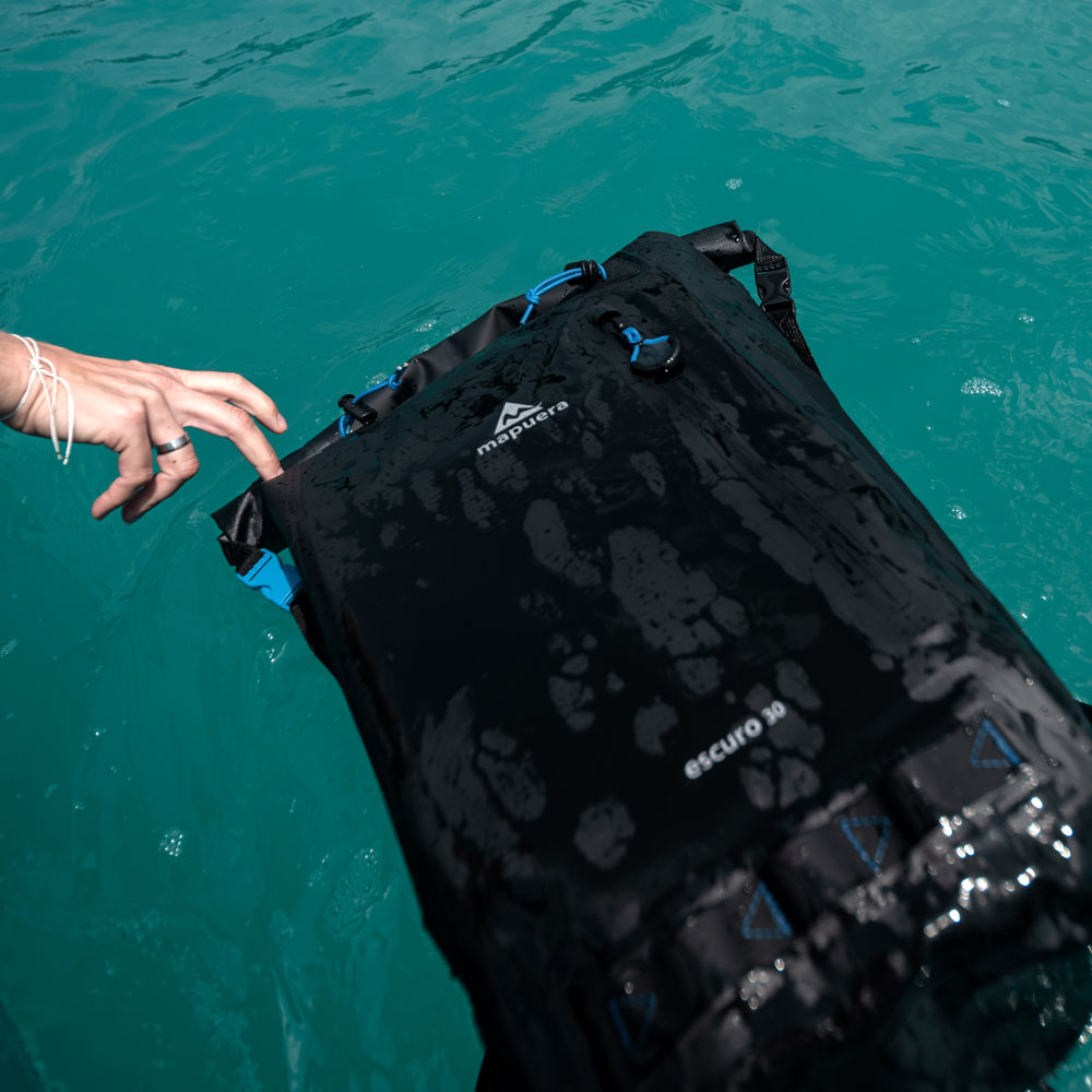 Der Escuro 30 von mapuera ist der größte Rucksack aus der Escuro Reihe. Dieser Tagesrucksack eignet sich perfekt für etwas längere Aufenthalte auf dem Wasser. Wenn man zum Beispiel auf dem Jet-Ski ein paar Runden dreht und eventuell zu der nächstgelegenen Insel flitzt, reicht auch ein kleinerer, wasserdichter Rucksack. Bei einem längeren Ausflug mit dem Tretboot hingegen möchte man schon etwas mehr Sachen dabeihaben und schwimmende Kiosks zum Einkaufen findest du zumindest im mitteleuropäischen Raum eher selten. Unter diesen Umständen sollte man seine Semmel und Wasserflasche lieber gleich mitnehmen. Mit einer Ladekapazität von 15 kg bekommt man in den Tagesrucksack für Damen und Herren von mapuera schon einiges an Vorrat hinein. Ein Eigengewicht von nur 0,66 kg und ein ergonomisches Tragesystem garantieren jedoch, dass der Rücken dennoch geschont wird. Doch auch bei Wandertouren und Pilgerreisen bei unbeständigem Wetter bleibt man so zwar im Regen stehen, aber die Habseligkeiten trocken.