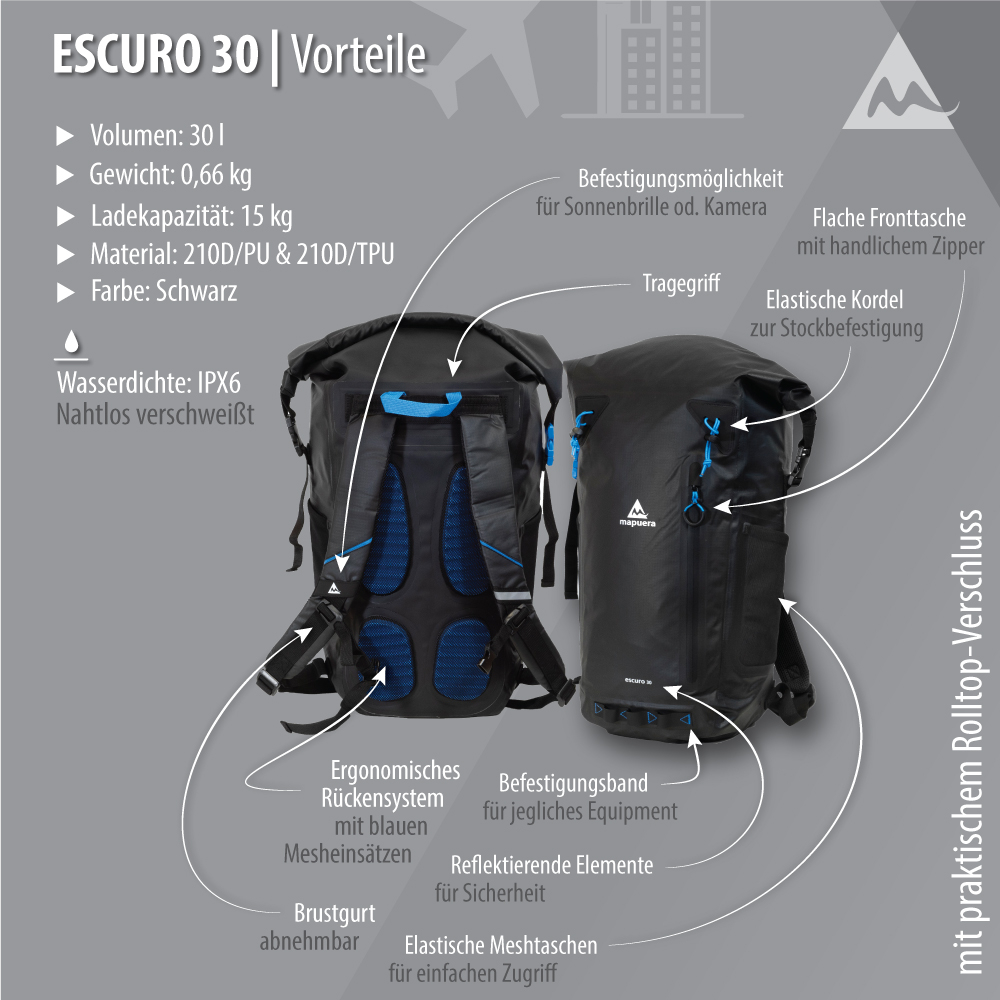 Technische Facts - wasserdichter Tagesrucksack Escuro 30: