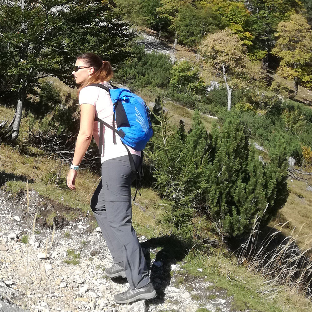 - Schultergurte: Mesh (außen und innen) & Schlaufen (Befestigungsmöglichkeit)