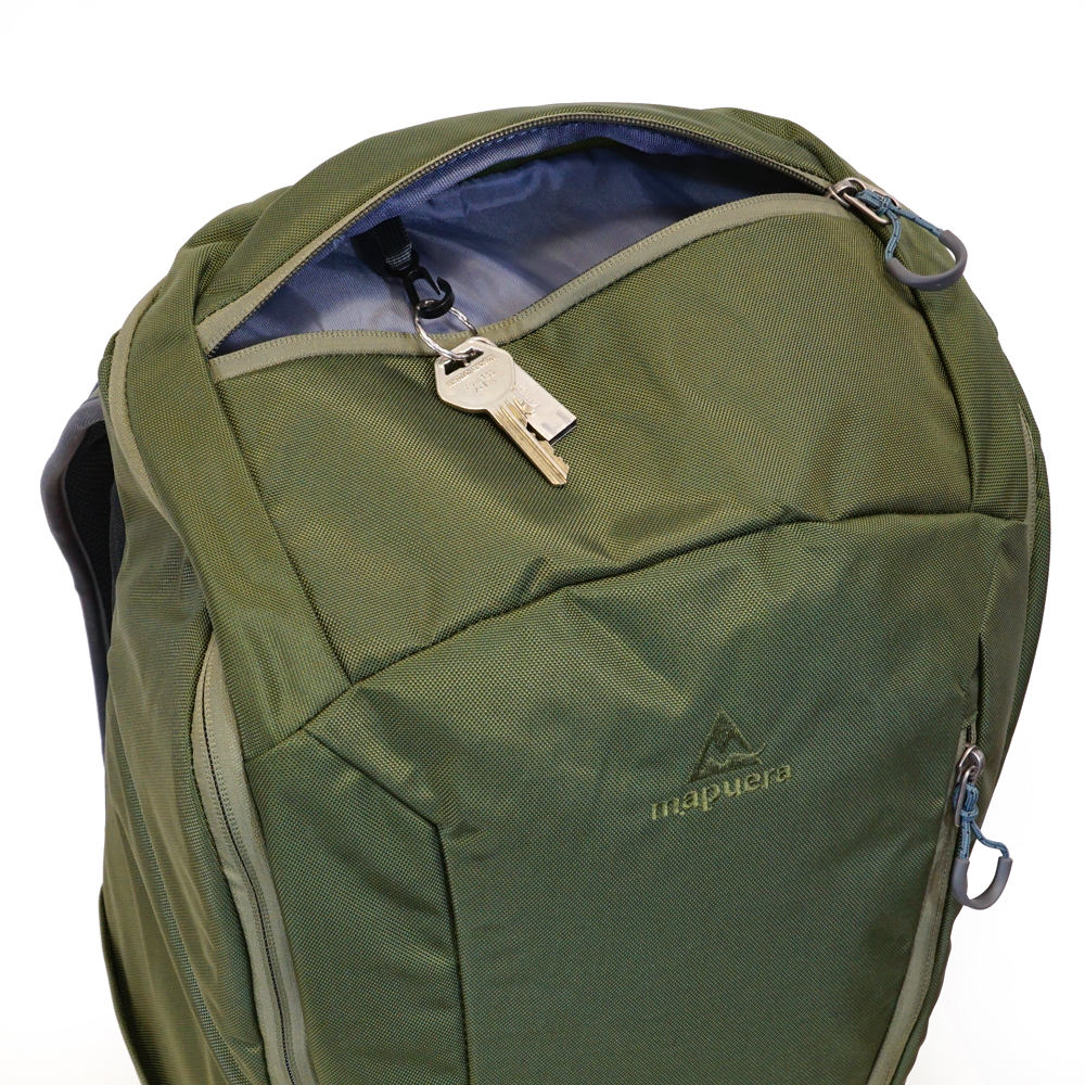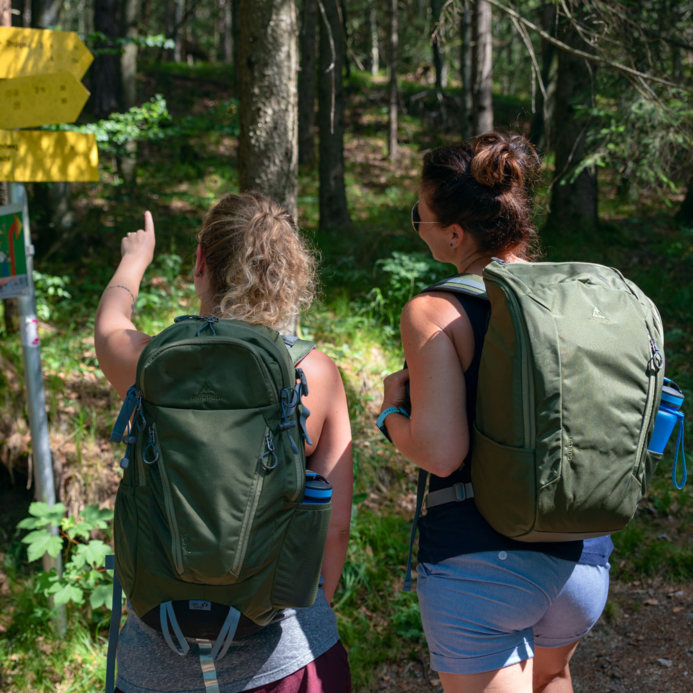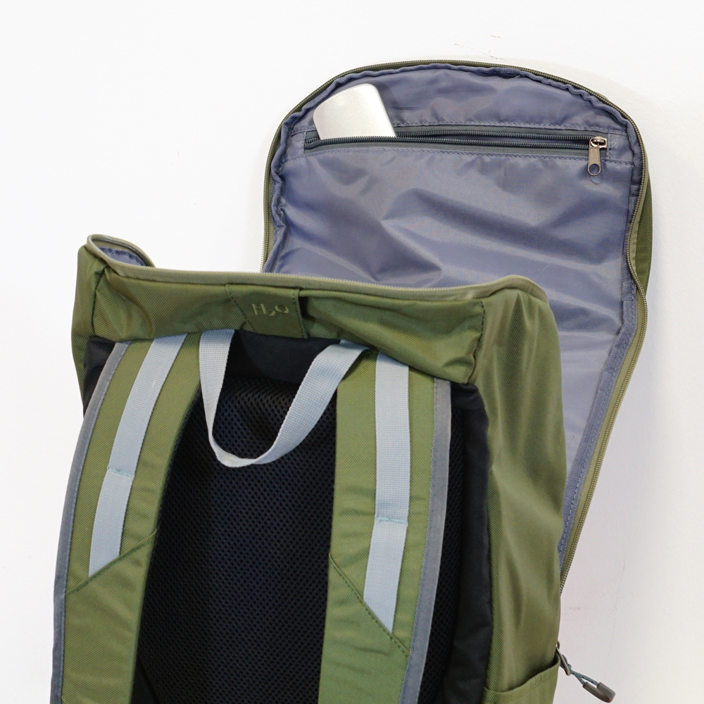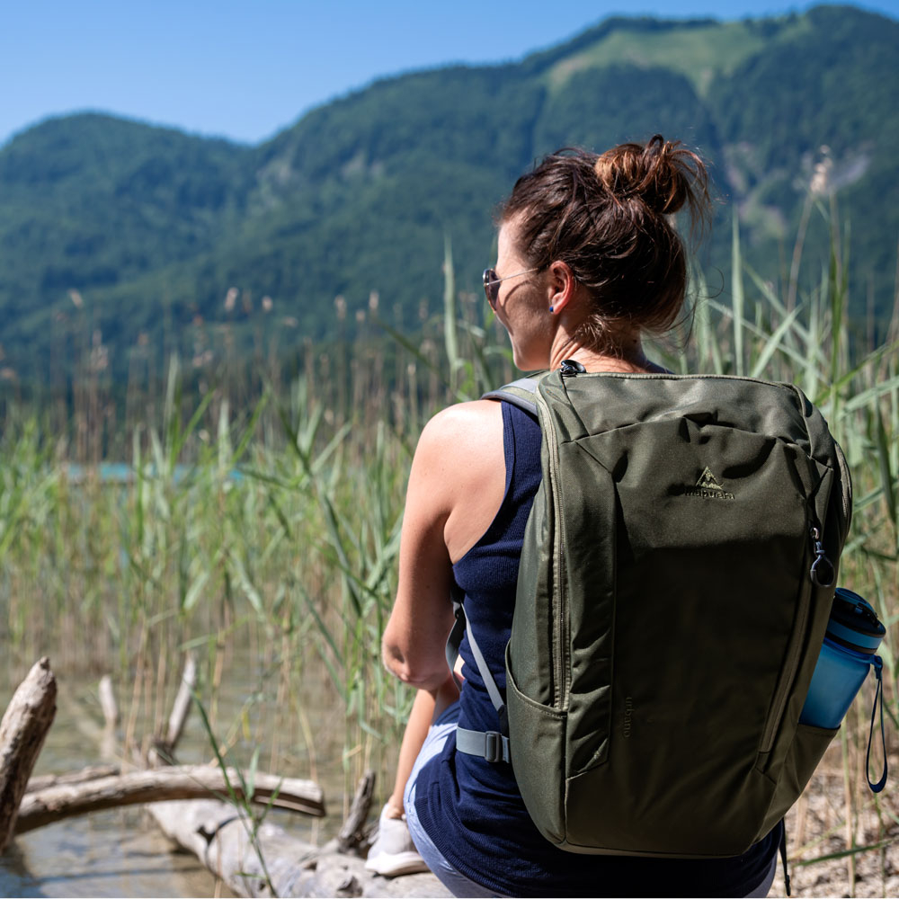 Sollte es jedoch mal in die richtige Wildnis gehen, bist du mit deinem mapuera Urbano noch immer genau richtig. Das stylische Olivgrün wird plötzlich ganz unscheinbar und lässt dich eins mit der Natur werden. Anstelle deines Notebooks gibst du einen Trinksack in das gepolsterte Innenfach, ziehst anstelle der Kopfhörer den Trinkschlauch durch die H2O-Öffnung und bist somit bestens für dein Outdoorabenteuer gerüstet. Solltest du doch einmal zu wenig Platz in deinem Urbano haben, kannst du problemlos kleine Ausrüstungsgegenstände an den Befestigungslaschen auf den Trägern montieren.