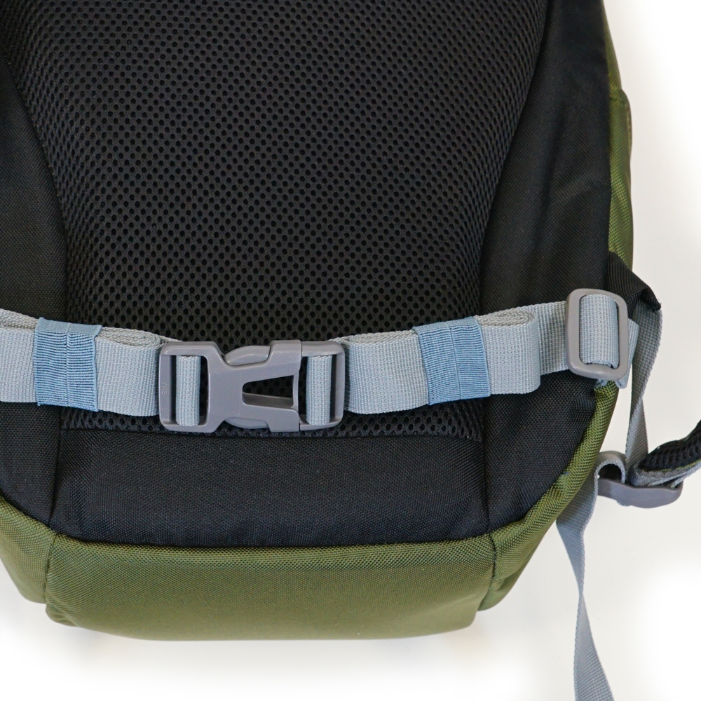 - Stufenlos höhenverstellbarer Brustgurt mit Notfallpfeife