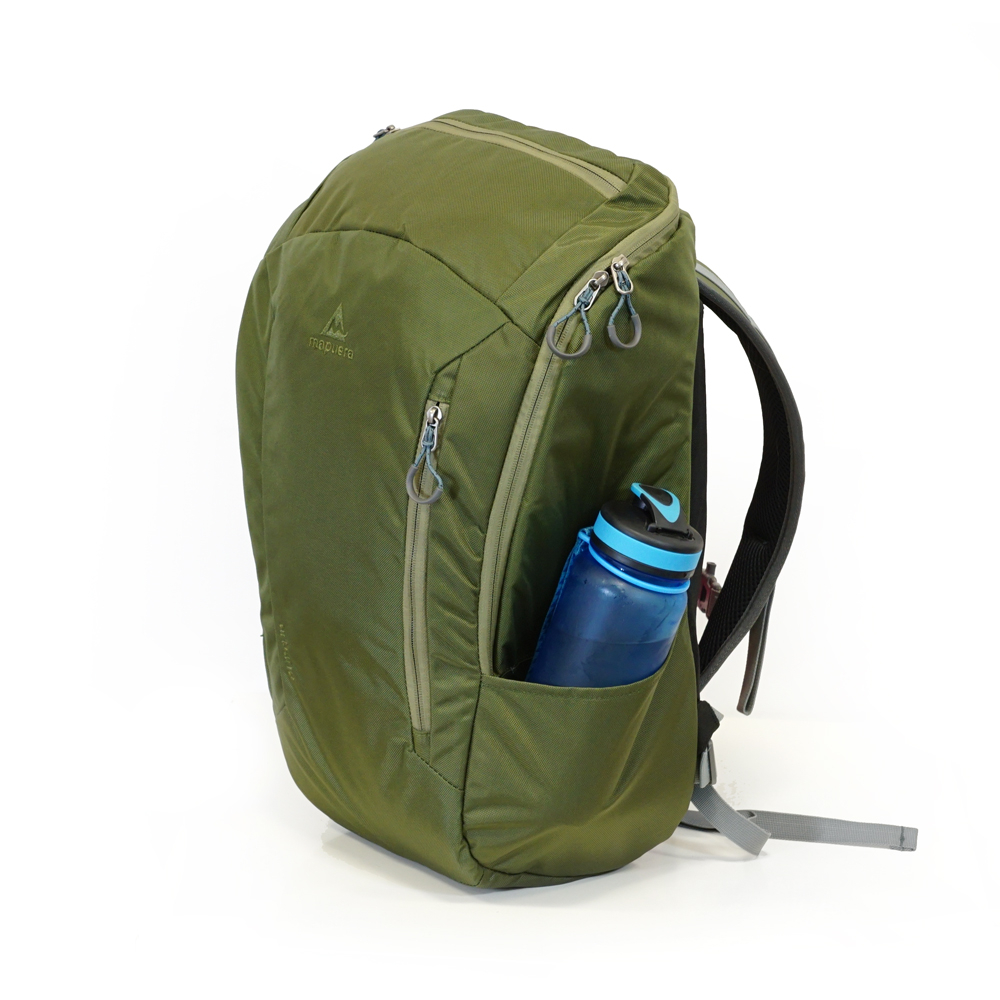 Die klare Trapezform, das sportliche Design und das stylische Olivgrün signalisieren Stärke. Mit 20l Volumen bei gerade mal 980g Eigengewicht hast du im mapuera Urbano Cityrucksack genügend Platz, um alles für dein Abenteuer in der Stadt dabei zu haben. Das gepolsterte Laptopfach bietet besten Schutz für dein bis zu 15 Zoll großes Notebook, welches du im Business, auf der Uni oder in der Schule brauchst. Das große Hauptfach lässt sich im Nu Bodentief öffnen und du kannst deine Utensilien problemlos verstauen. In den beiden Seitentaschen bringst du deinen Kleinkram unter und hängst deinen Schlüssel an den integrierten Keyholder. Somit hast du stets alles griffbereit. Viel Trinken ist wichtig, daher nimmst du genügend Flüssigkeit in den beiden seitlichen Getränkehalterungen mit.