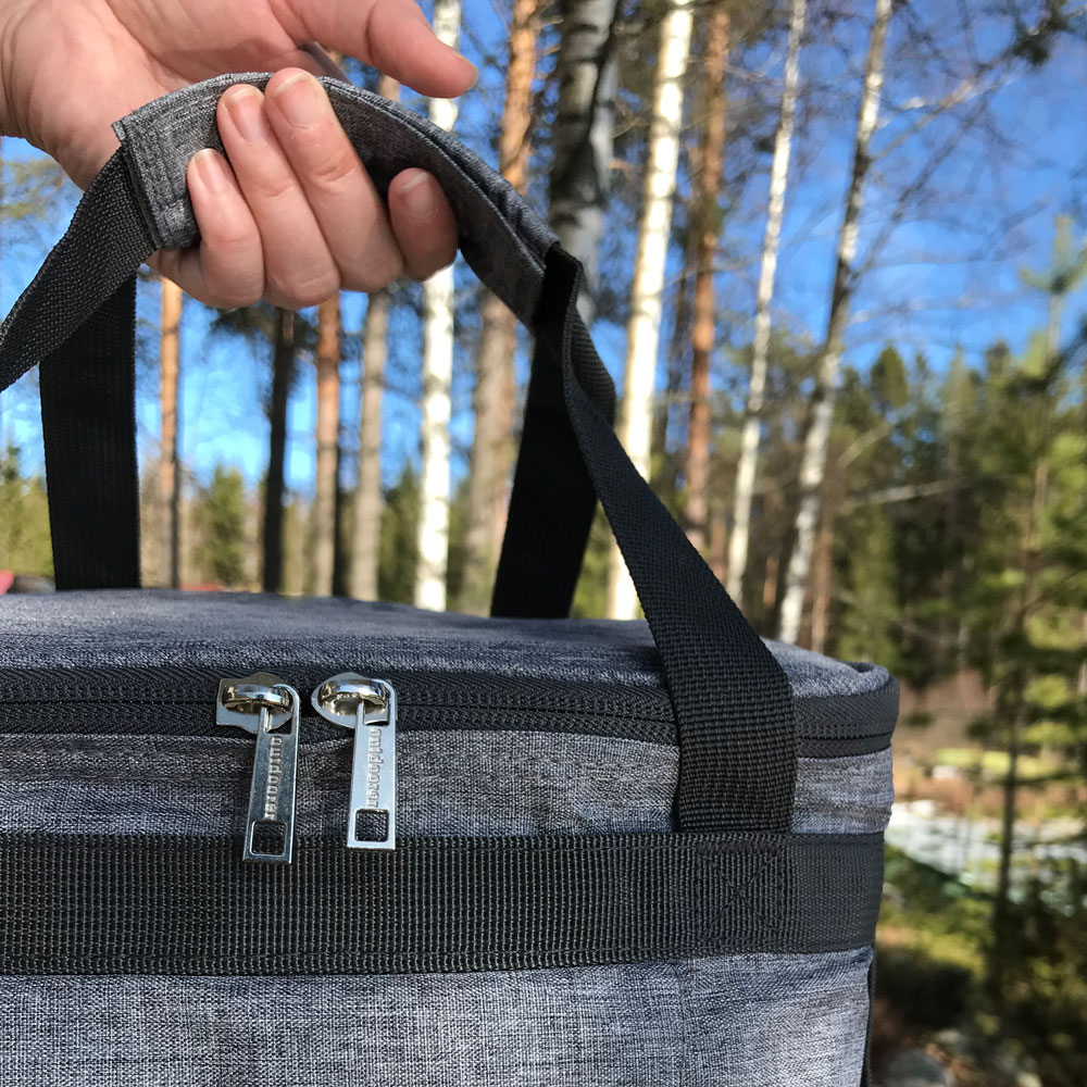 Technische Facts – outdoorer Cool Butler Isoliertasche 40l Kühltasche & Thermo-Isoliertasche für Essen und Getränke, den Einkauf etc. Kühltasche groß: 40 Liter Maße: 38 x 25 x 42 cm Gewicht: ca. 500 g Material: Ripstop-Polyester Obermaterial Lebensmittelechtes PEVA Innenfutter Hochwertige EPE Isolierung Kann Speisen und Getränke viele Stunden kühl- und warmhalten Kanten verstärkt für mehr Stabilität Kühltasche faltbar Mit verstellbarem Schultergurt und ummanteltem Tragegriff Reißverschluss sehr hochwertig Wasserfester, herausziehbarer Innensack Fronttasche mit Klettverschluss Kühltasche grau mit outdoorer Logo 8 mm EPE- Isolierung für besonders lange Isolierleistung {{widget type="xonu_widgets/youtube" src="https://www.youtube.com/watch?v=0jxTu385nY4" fullwidth="1" allowfullscreen="1" allow="accelerometer; autoplay; clipboard-write; encrypted-media; gyroscope; picture-in-picture" showcontrols="1" privacymode="1" lazyloader="1"}} 40 Liter Kühltasche - groß genug für Einkauf, Auto oder Camping Mit einer Dimension von 38 x 25 x 42 cm und einem 40 Liter Volumen passt so einiges in diese große Isoliertasche. Sie erweist sich dank ihrer Größe vor allem für den Einkauf, eine Reise mit dem Auto oder zum Camping als praktisch. Natürlich kann sie auch an den Strand mitgenommen werden. Der Cool Butler 40 hält den Inhalt dank hochwertiger Isolierung viele Stunden kühl – natürlich lässt sich die Kühldauer mit Kühlakkus verstärken. Kühltasche faltbar & umhängbar Da die Kühltasche faltbar ist, lässt sie sich nach dem Gebrauch wieder einfach verstauen. Zudem kannst du dir die Isoliertasche mit verstellbarem Schultergurt umhängen oder am ummantelten Griff schnappen. Letzterer ist gepolstert, damit du die Kühltasche angenehm tragen kannst. Lebensmittelechte Isoliertasche für Essen und Getränke Wichtig bei einer Kühltasche ist, dass keine schädlichen Stoffe auf das Essen beziehungsweise die Getränke übertragen werden. Deswegen ist der Cool Butler 40 mit lebensmittelechtem Innenfutter ausgestattet. Hochwertige Kühltasche ohne Akku – aber mit praktischem Detail Diese Kühltasche ohne Akku hält passiv kühl, doch das reicht für einen Tag vollkommen. Um ganz sicher zu gehen, verwende zusätzlich Kühlakkus. Nach dem Einsatz kannst du den wasserfesten Innensack herausziehen und ihn einfacher reinigen. Jetzt die praktische Kühl- und Isoliertasche mit 40 l Volumen bestellen und die Freude groß werden lassen, wenn es es darum geht, deine Getränke & Speisen beim nächsten Ausflug kühl beziehungsweise warm zu genießen!