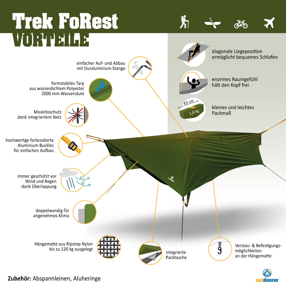 Technische Facts zur Hängematte mit Tarp - Trek FoRest: