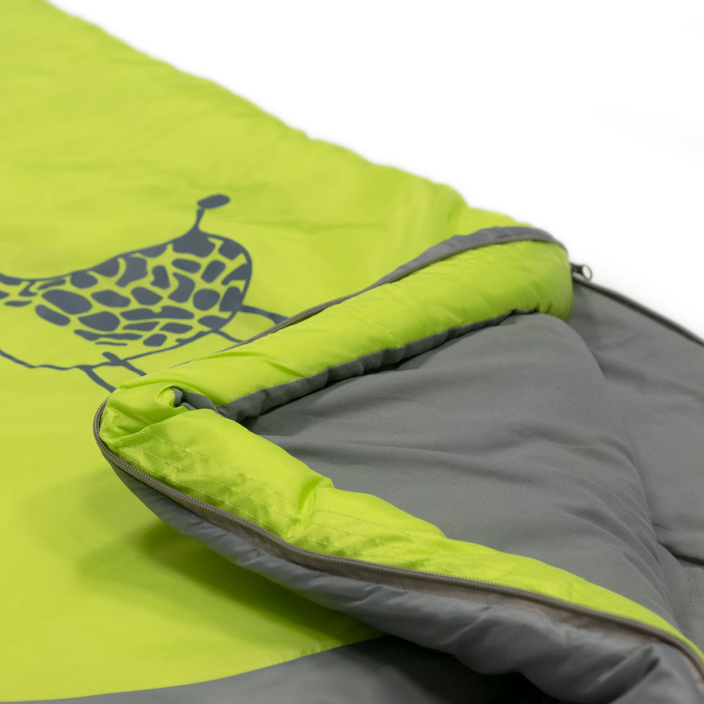 Die Zips sind gut vernäht und problemlos zu bedienen. Dem neuen Besitzer hat der Schlafsack auf Anhieb gefallen. Beim ersten Einsatz im Zelt hat er sich sofort gerne rein gekuschelt. Dass man den Schlafsack auch als Decke verwenden kann, hat sich bei den eher sommerlichen Temperaturen ausgezahlt.