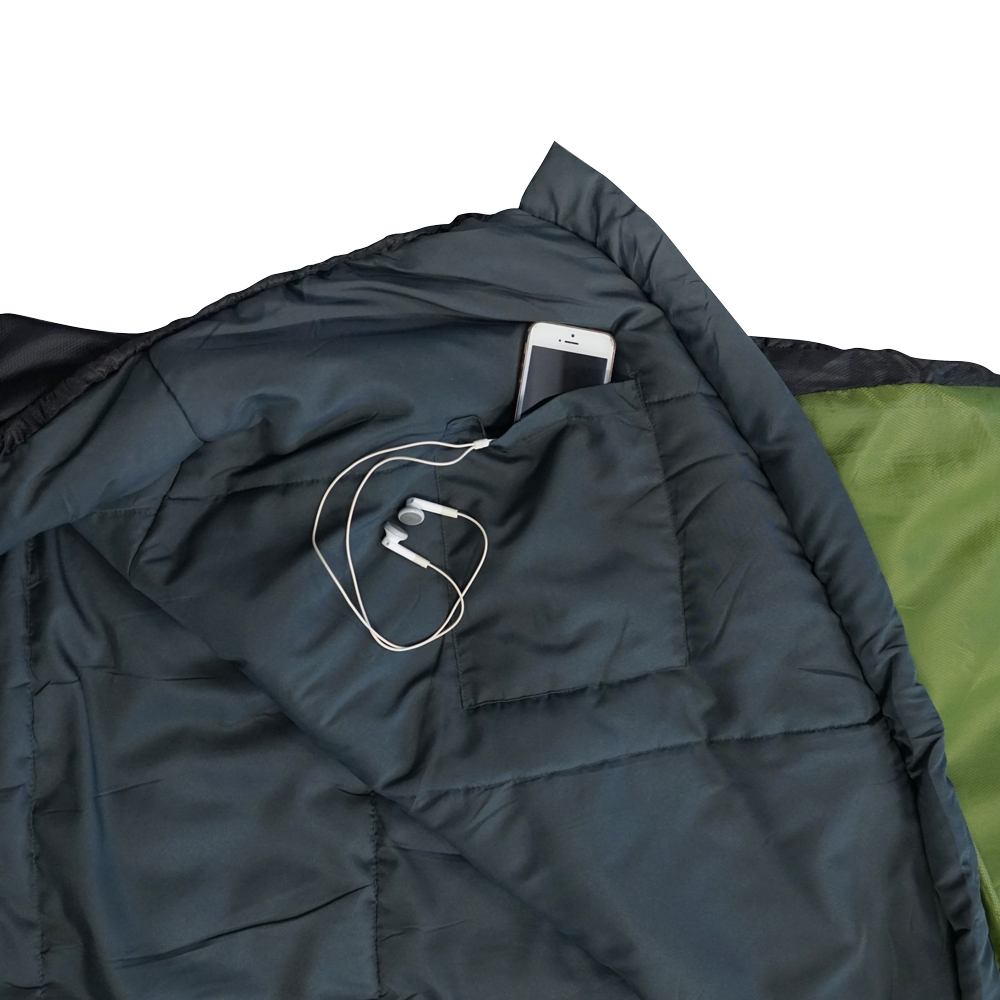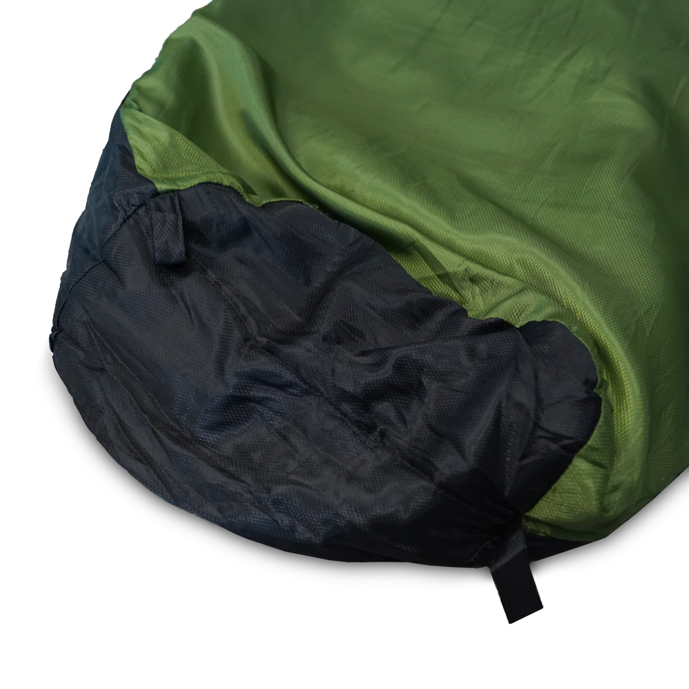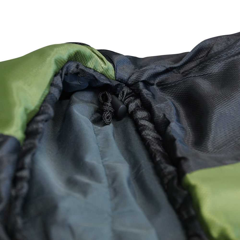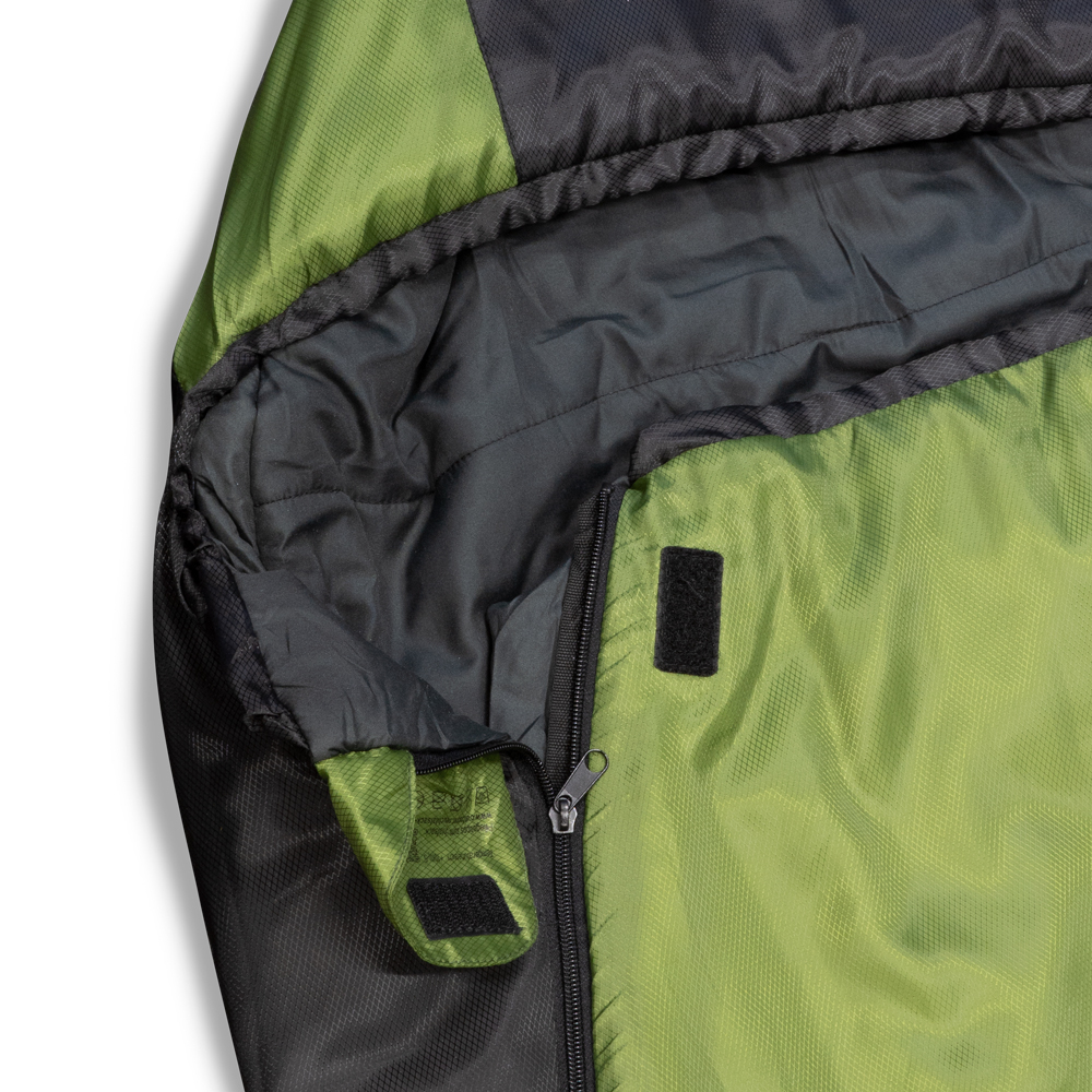 Die Außenhülle besteht aus Polyester Rhombus Ripstop. Es ist ein reißfestes und sehr langlebiges Material, welches die Körperwärme optimal isoliert. Risse sollten bei normaler Benützung eigentlich nicht entstehen, sollte dennoch einmal einer unvorhergesehen auftreten, verhindert das Ripstop Material das Weiterreißen. Das Futter besteht aus weichem Polyester.