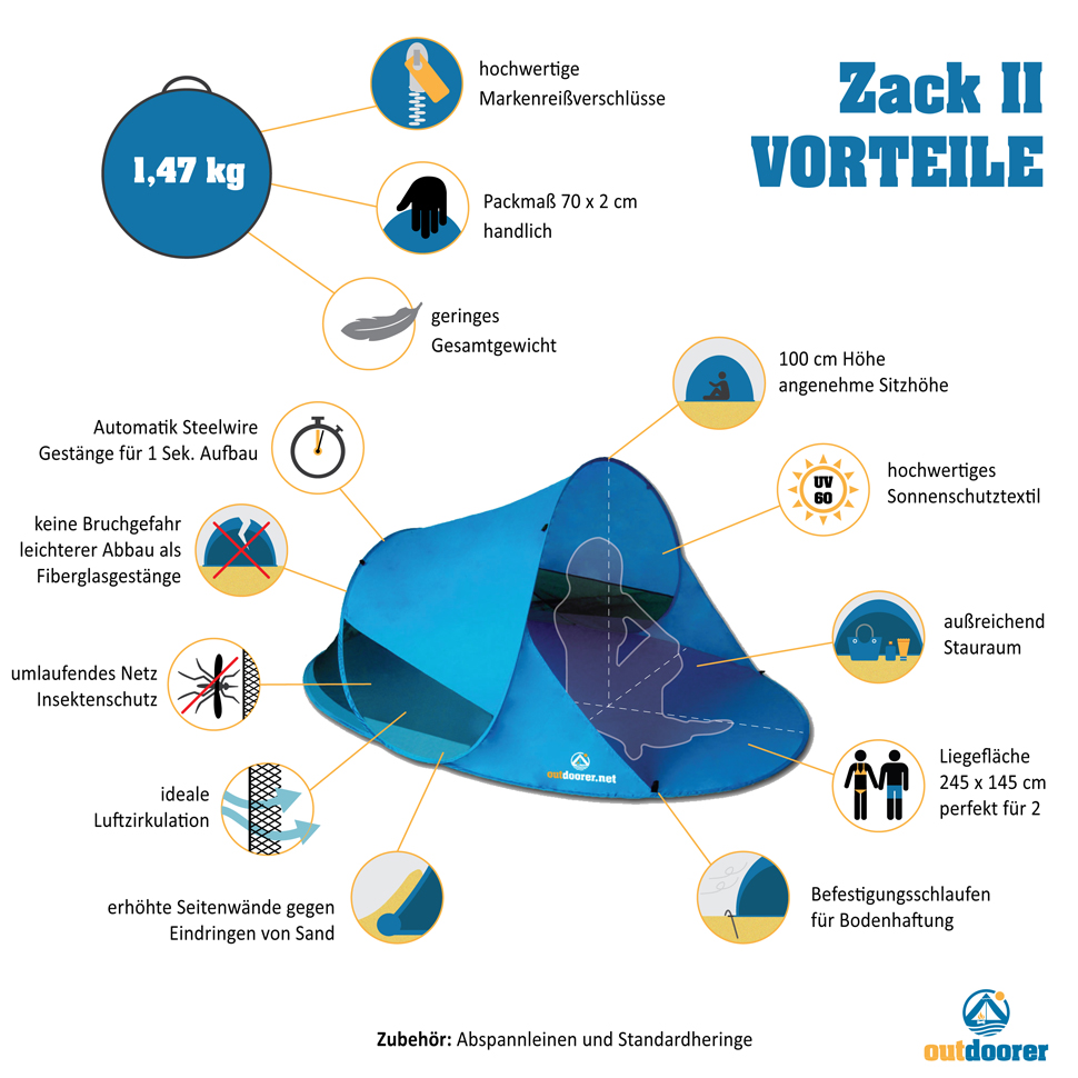 outdoorer Pop Up Strandmuschel Zack II - blau, selbstaufbauend
