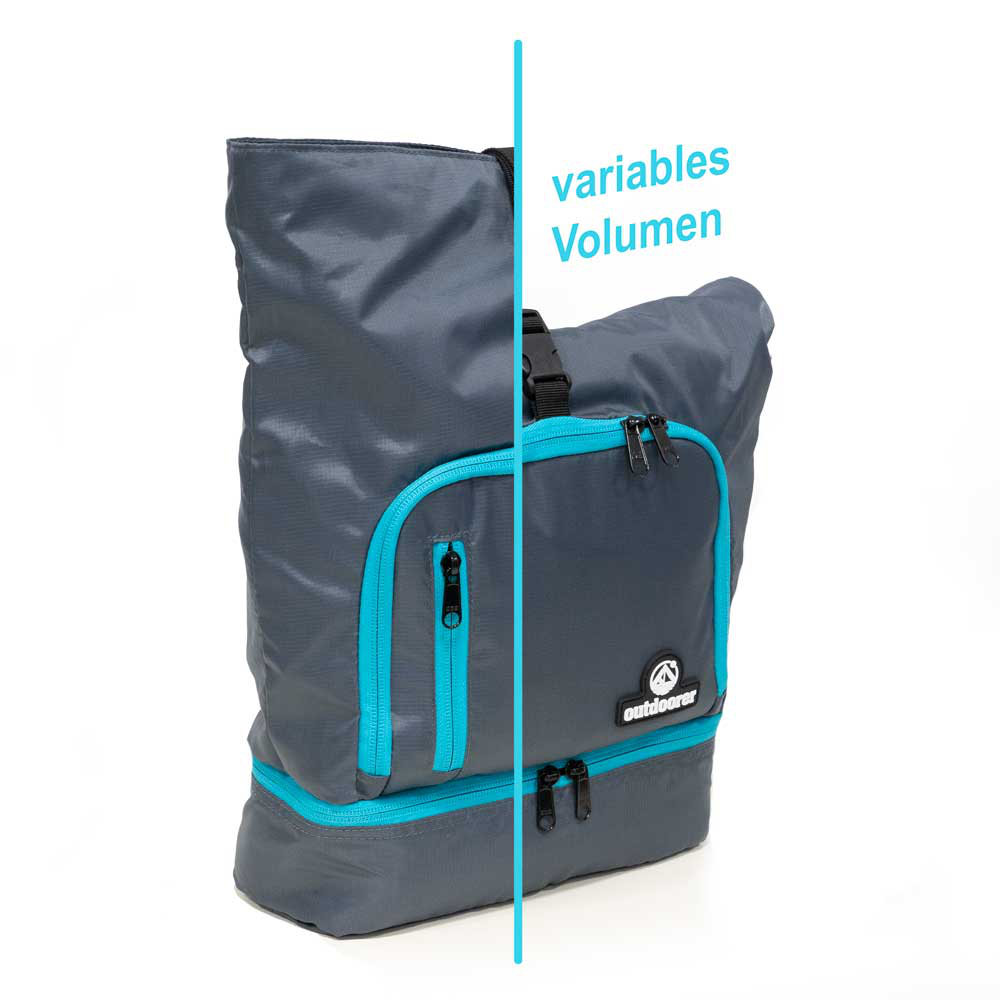 - Rolltop Öffnung mit Schnallen: je nach Füllung ist die Größe verstellbar