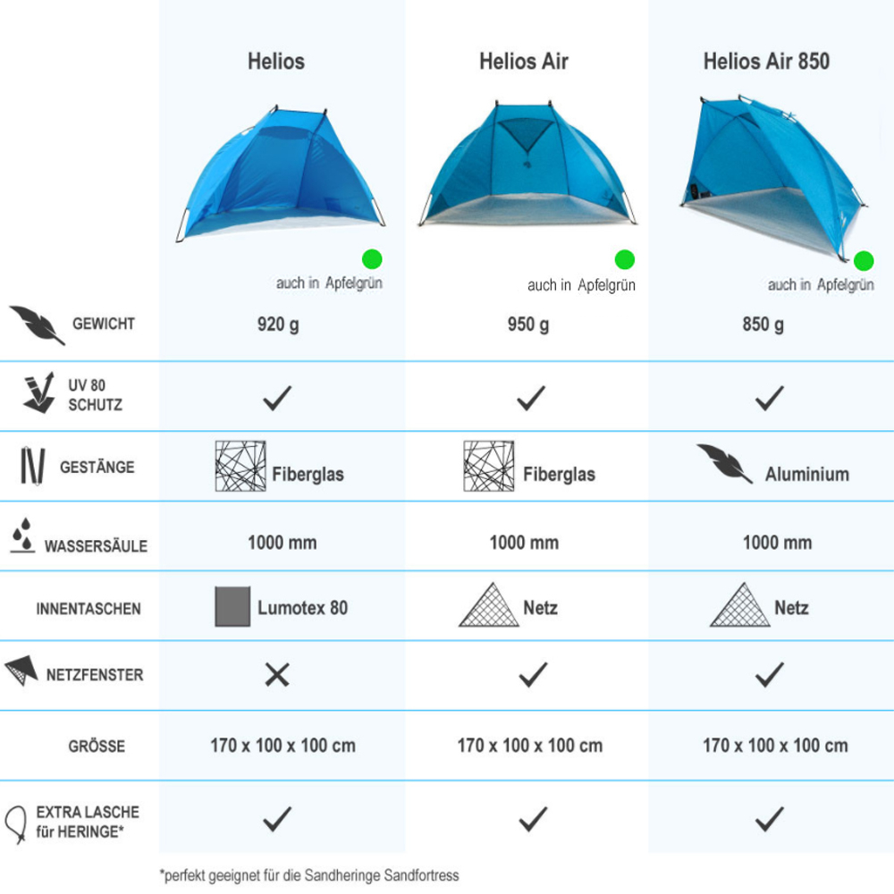 Technische Facts – Helios Air Strandmuschel zum Reisen in Grün