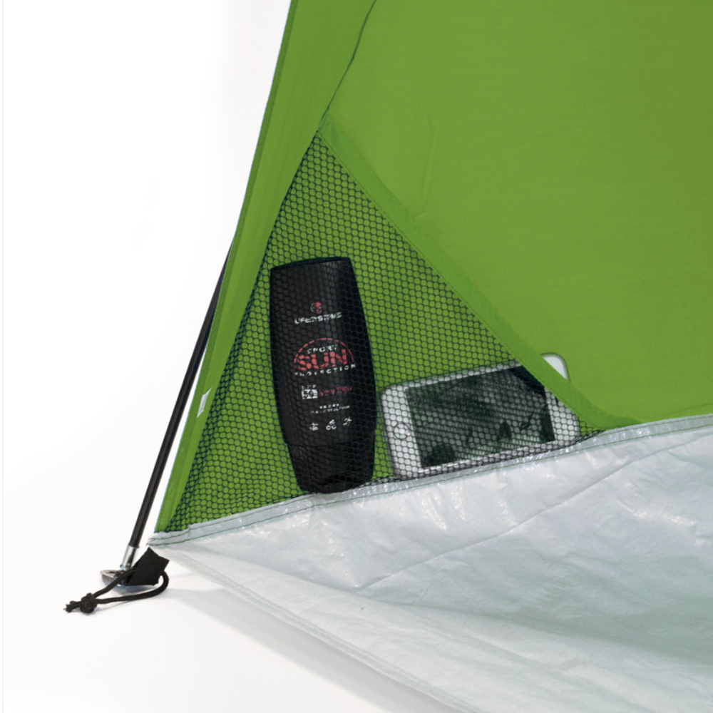 Grüne Helios Air Strandmuschel zum Reisen mit Minipackmaß